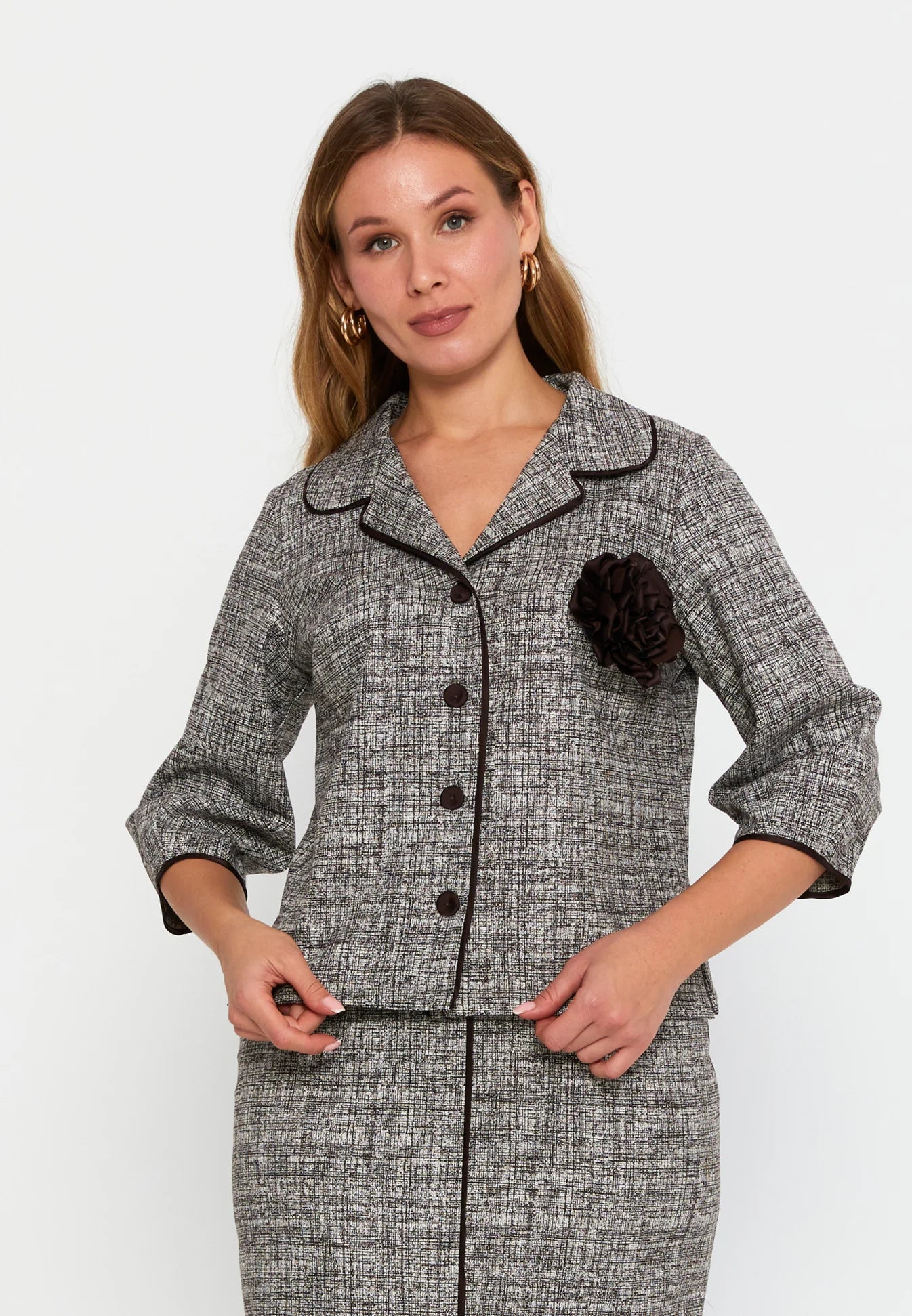 We offer shipping to any part of the world (Calculated on checkout)Boost your professional wardrobe with the DD516 Grey Office Blazer. Made with premium quality fabric, consisting of 63% polyester and 34% viscose, this blazer offers a sophisticated look and comfortable fit. Perfect for any office setting, stand out in style and confidence.