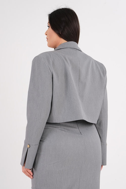 We offer shipping to any part of the world (Calculated on checkout)This DD6121 Grey Crop Blazer is expertly crafted with a blend of 70% polyester, 6% elestan, and 24% viscose fabric, making it a durable and comfortable choice. The high-quality materials used in this blazer provide a sleek and professional look, perfect for any occasion. Upgrade your wardrobe with this versatile and stylish piece.