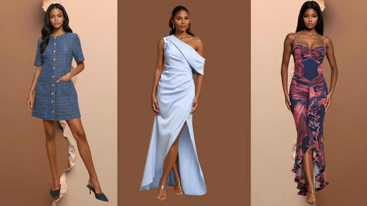 The GG4128 Slate Blue Satin Midi Dress features a back invisible zipper for a clean and polished finish. Its luxurious satin fabric offers a smooth drape that enhances the wearer’s silhouette. The model, standing 5'5" (34"/24"/35"), wears a size Small, demonstrating the dress’s tailored...