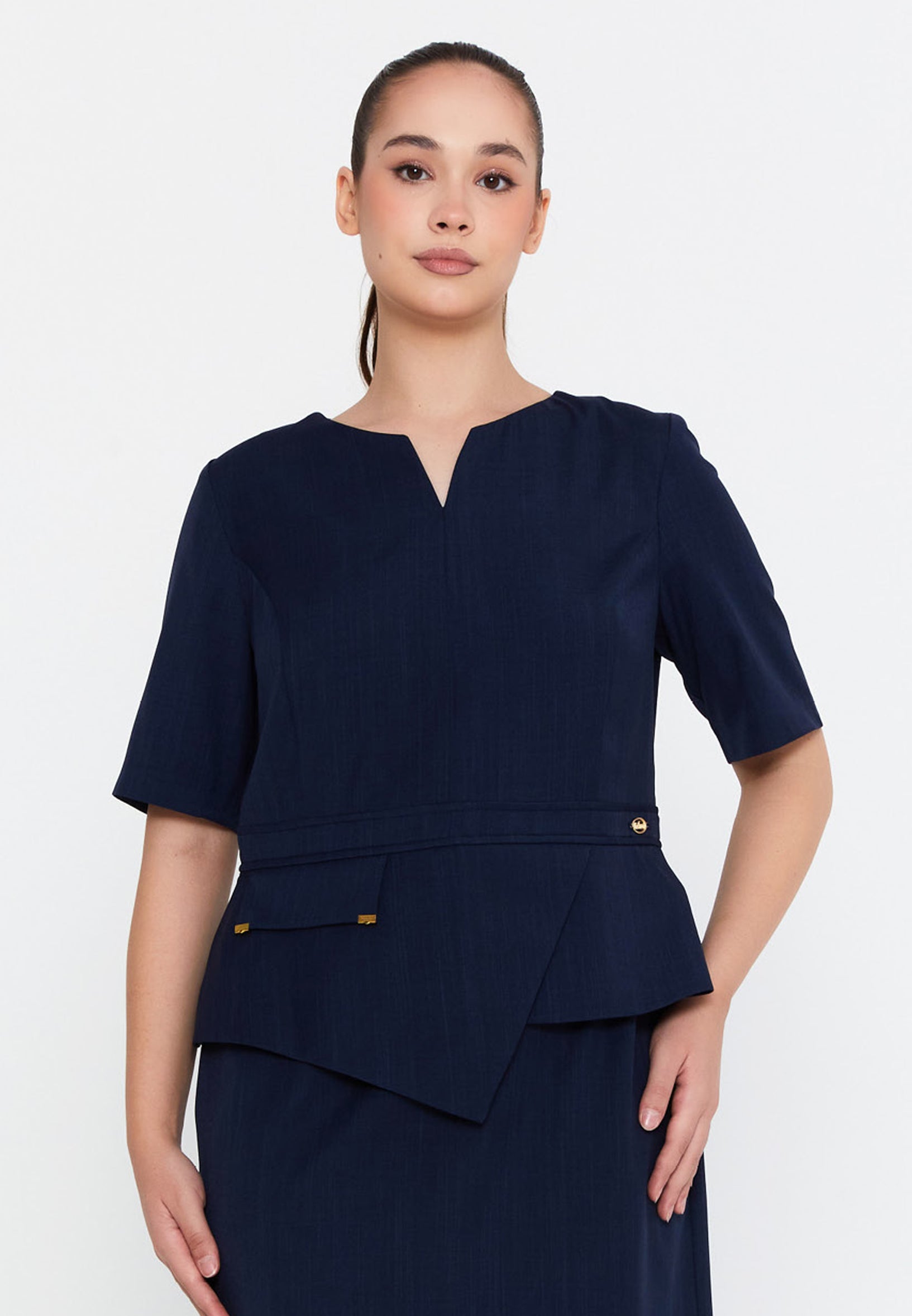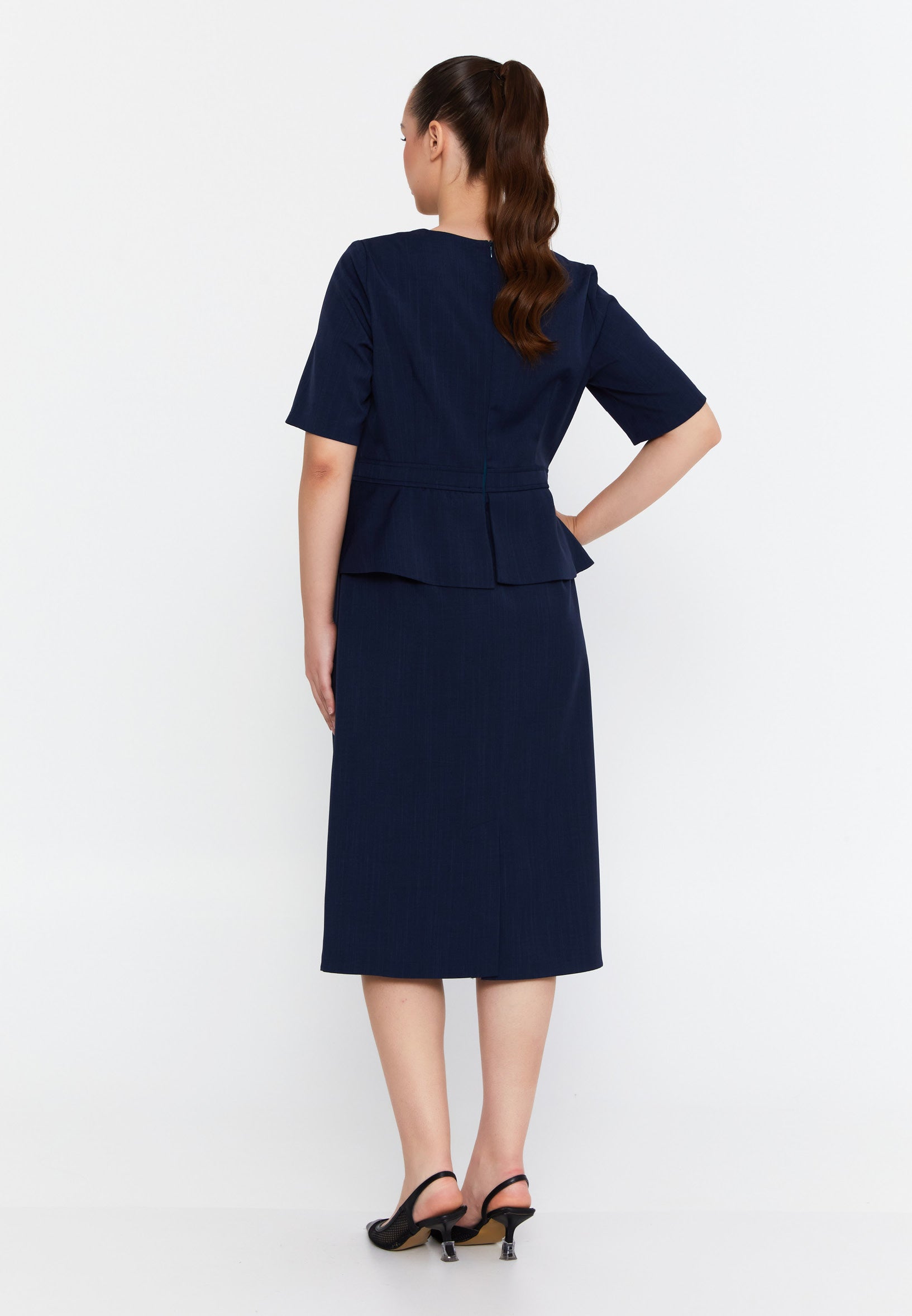 We offer shipping to any part of the world (Calculated on checkout)Introducing the DD504 Blue Pencil Cut Midi Dress. Made from a blend of 90% cotton and 5% viscose, this dress is perfect for the Fall/Winter season. Its fabric content ensures both comfort and style, making it a versatile addition to your wardrobe. Don't miss out on this must-have dress!