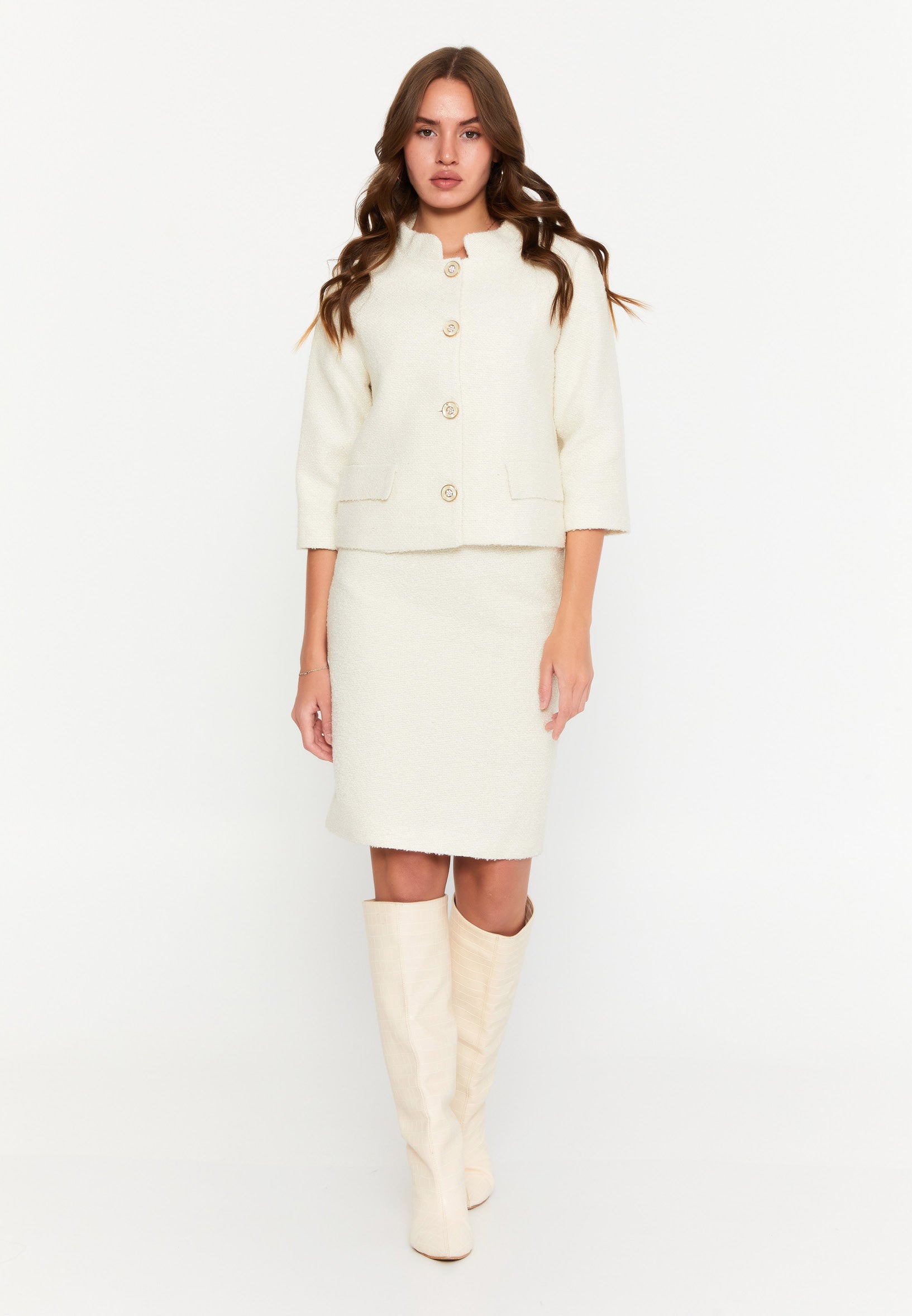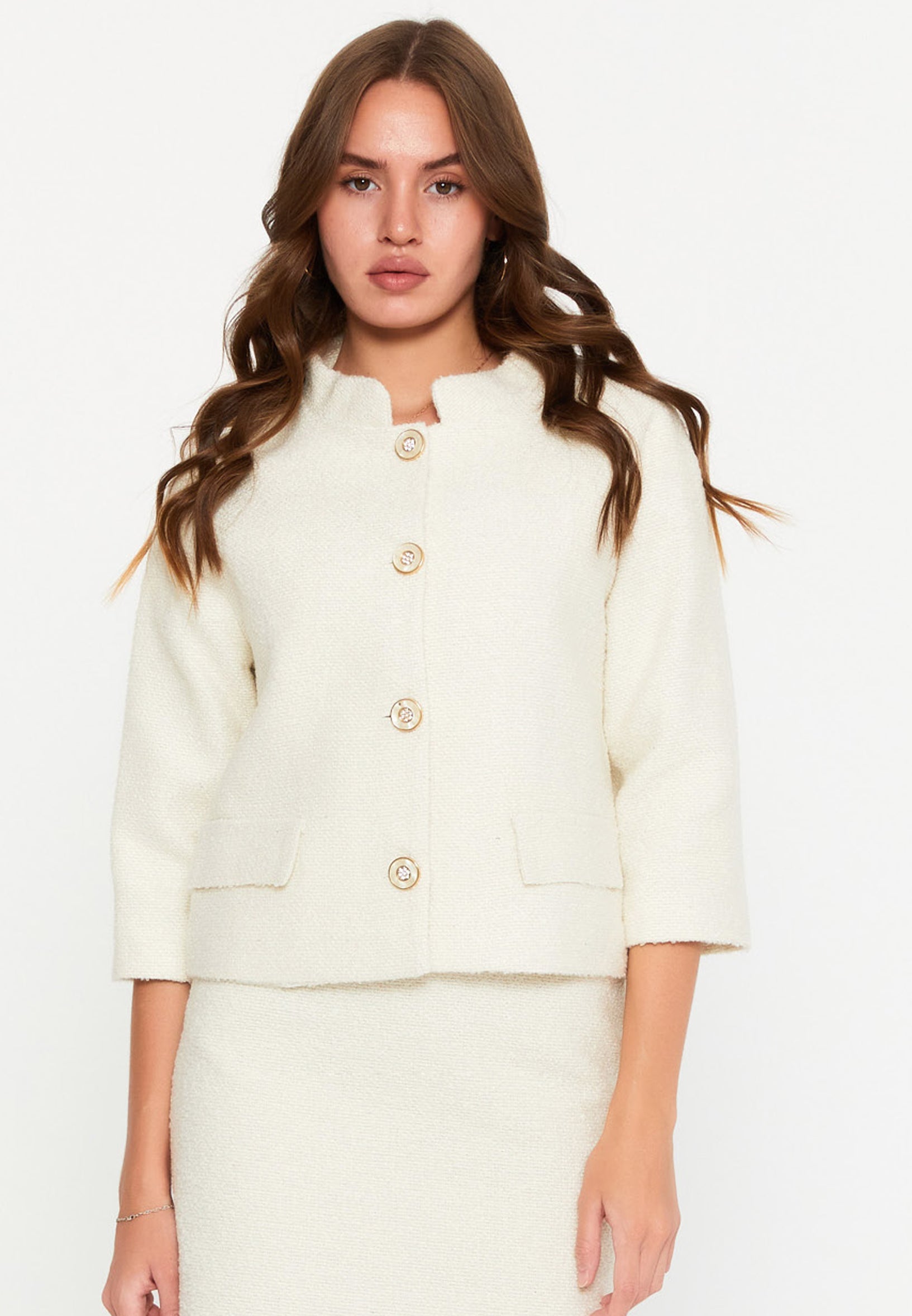We offer shipping to any part of the world (Calculated on checkout)Expertly crafted from a blend of 40% cotton and 30% acrylic, the DD5126 White Tweed Jacket is perfect for adding a touch of sophistication to any outfit. Enjoy the breathability of cotton and durability of acrylic with this stylish jacket.