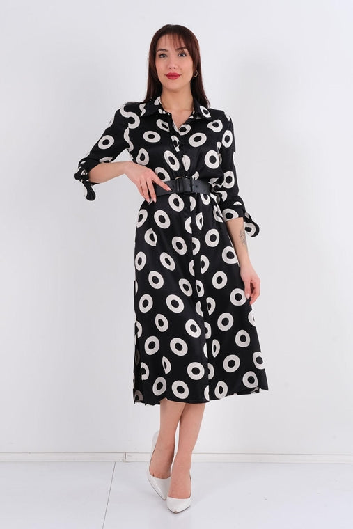 We offer shipping to any part of the world (Calculated on checkout)Experience comfort and style with our DD6113 Circle Black Midi Dress. Made with 100% Viscose fabric and a 1% belt, this dress offers a perfect fit and luxurious feel. Elevate your look with the perfect combination of elegance and functionality.