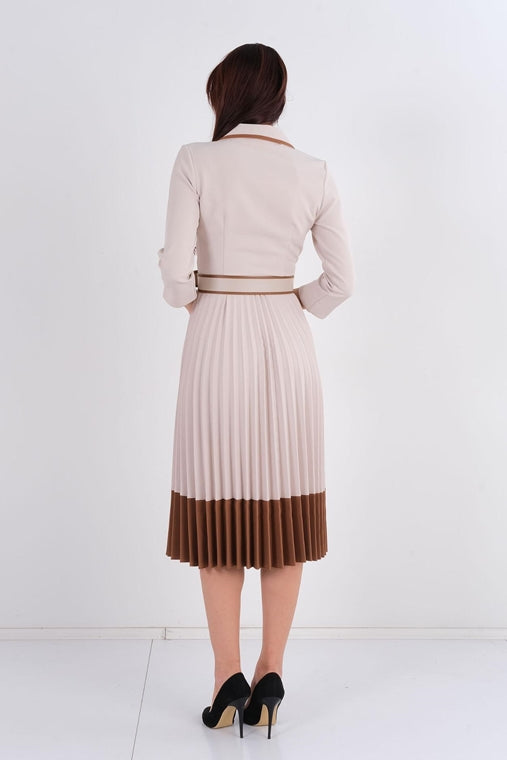 We offer shipping to any part of the world (Calculated on checkout)Crafted with a luxurious fabric blend of 37% viscose and 63% rayon, this DD6115 Brown Trim A-line Dress exudes sophistication. The addition of a stylish belt adds the perfect finishing touch, making this dress a versatile and effortlessly chic addition to any wardrobe.
