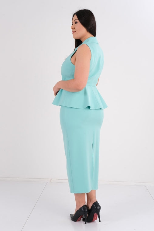 We offer shipping to any part of the world (Calculated on checkout)Expertly crafted with a blend of 88% polyester and 12% elestan fabric, the DD6126 Blue Peplum Midi Dress offers maximum comfort and style. Its sleek, sleeveless design and elegant peplum detailing make it the perfect choice for any formal occasion.