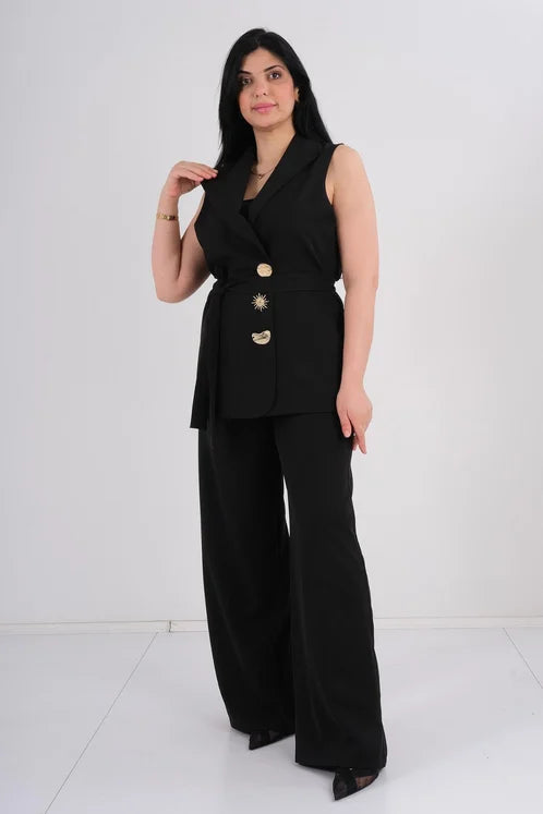 We offer shipping to any part of the world (Calculated on checkout)The DD7025 Gold Button Vest Suit Jacket is a sleek and sophisticated addition to any wardrobe. This black jacket features chic gold buttons, adding a touch of elegance to your look. With its versatile design, this jacket can be dressed up for formal occasions or dressed down for a more casual look. Its quality construction ensures a long-lasting and stylish addition to your closet.