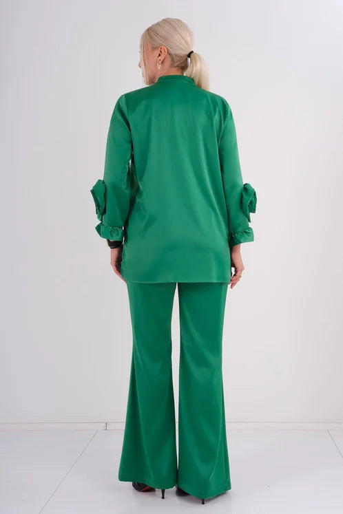 We offer shipping to any part of the world (Calculated on checkout)This Emerald Green Floral Sleeve Top is a must-have for any fashion-forward individual. The vibrant emerald green color is accentuated by the delicate floral design on the sleeves. Made with high-quality materials, this top offers both style and comfort. Perfect for any occasion, it's a versatile addition to any wardrobe.