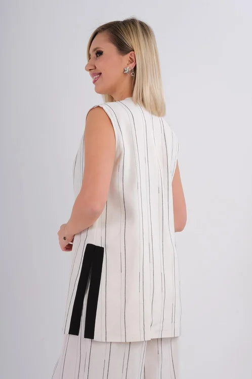 We offer shipping to any part of the world (Calculated on checkout)This DD7030 White Pin Strip Vest Jacket is a must-have for any professional wardrobe. With its classic pin stripe design, this vest jacket exudes sophistication and style. Made with high-quality materials, it offers a flattering fit and great comfort throughout the day. Elevate your look with this versatile and timeless piece.