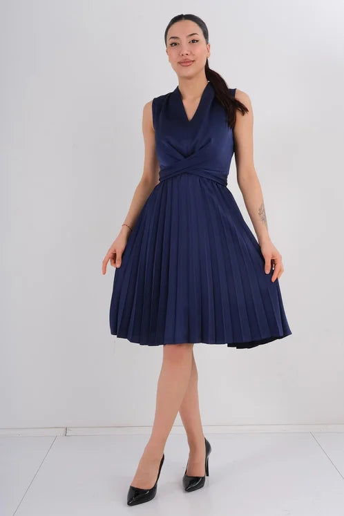 We offer shipping to any part of the world (Calculated on checkout)This navy midi dress boasts an elegant A-line silhouette and a tie waist, creating a flattering and versatile fit for any body shape. Made with high-quality fabric, it offers both comfort and style. Perfect for any occasion, this dress is a must-have addition to your wardrobe.