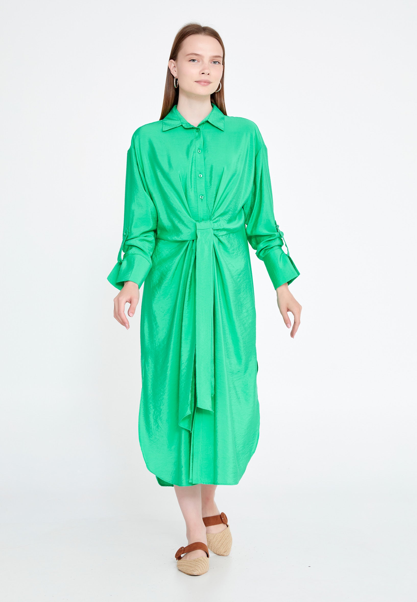 We offer shipping to any part of the world (Calculated on checkout)Expertly crafted from a blend of 85% viscose and 15% polyamide, the DD8023 Green Tie-Front Shirt Dress is a must-have for your spring and summer wardrobe. Perfect for casual occasions, this dress offers both comfort and style. Stay fashion-forward with this timeless piece.