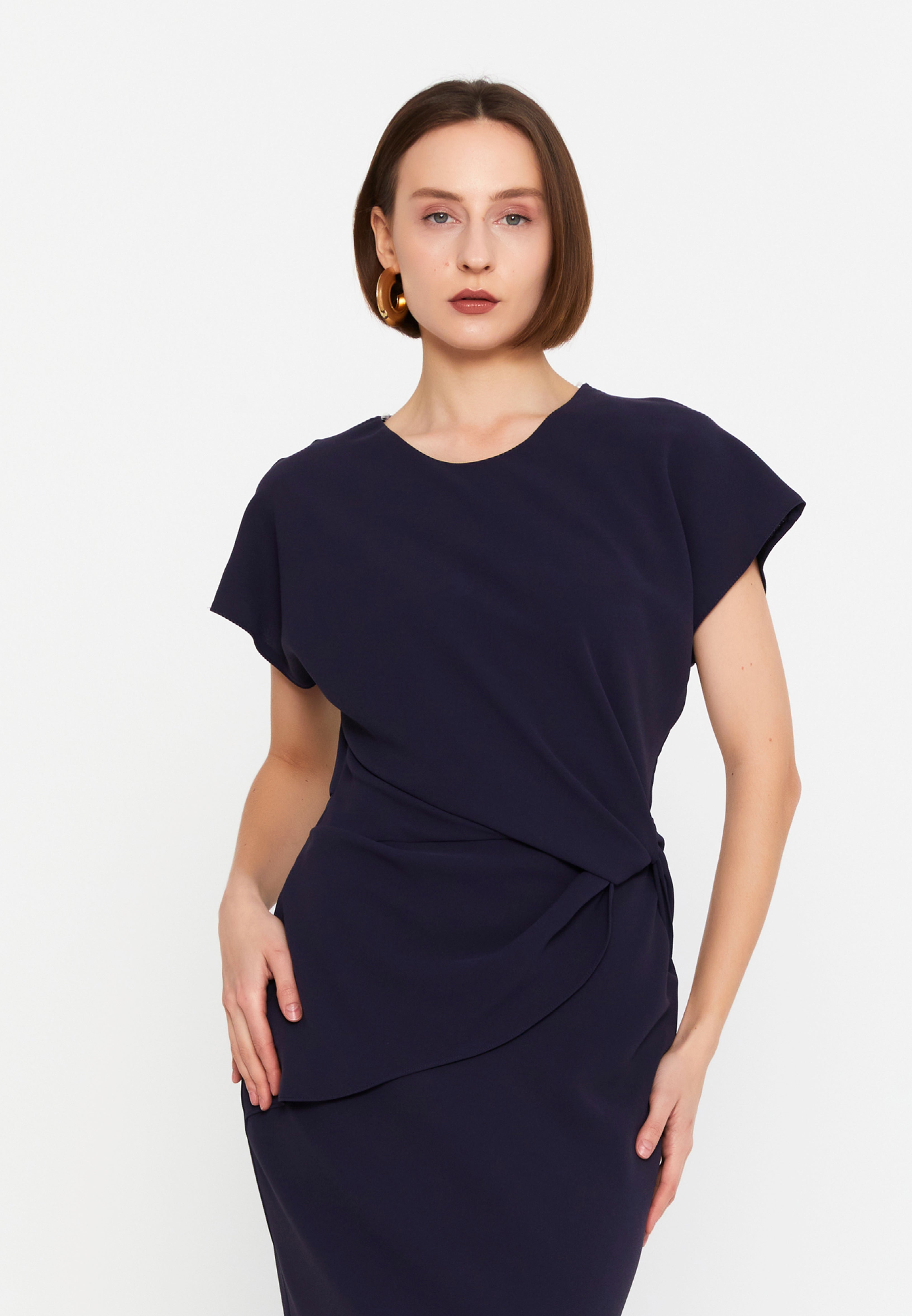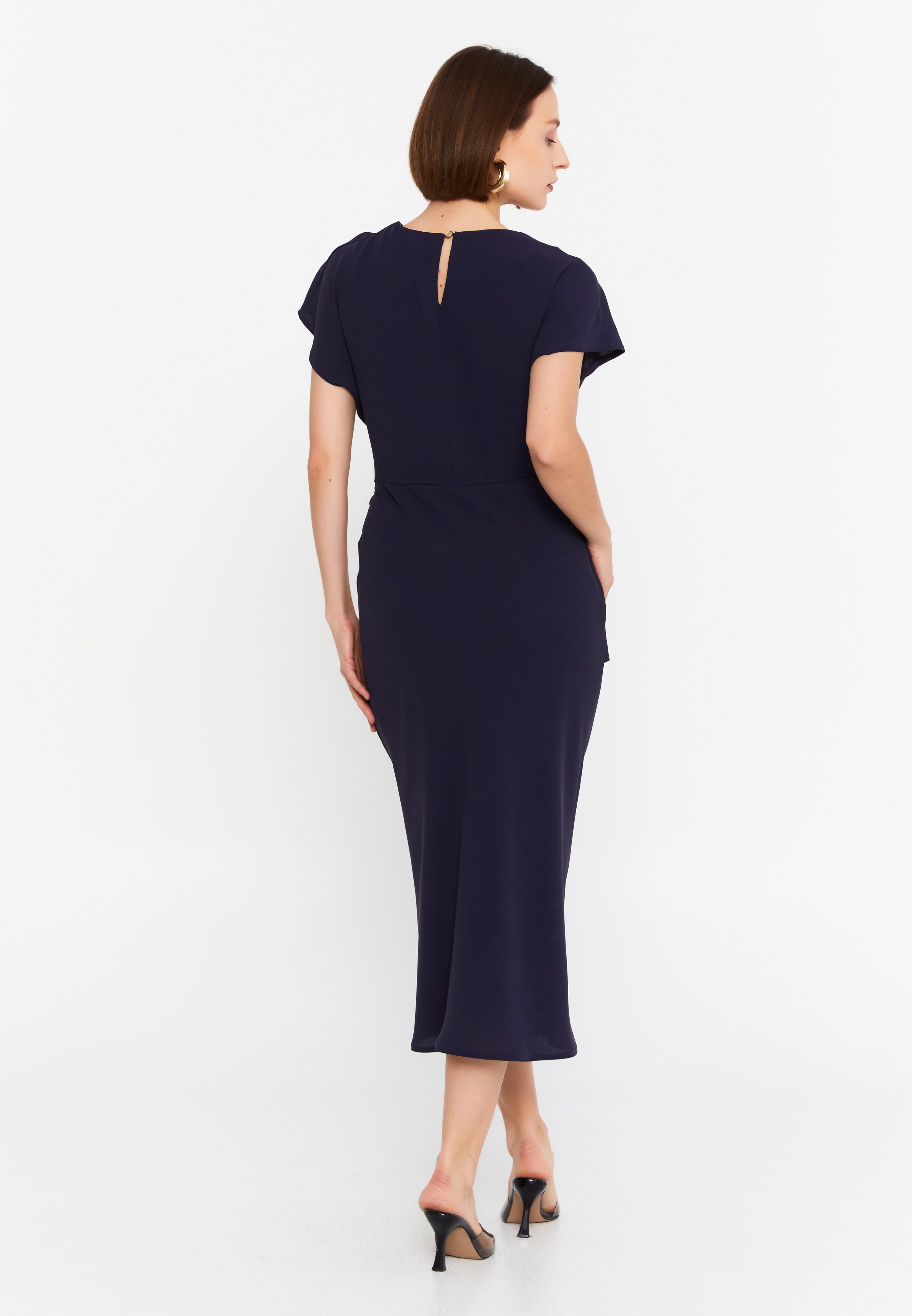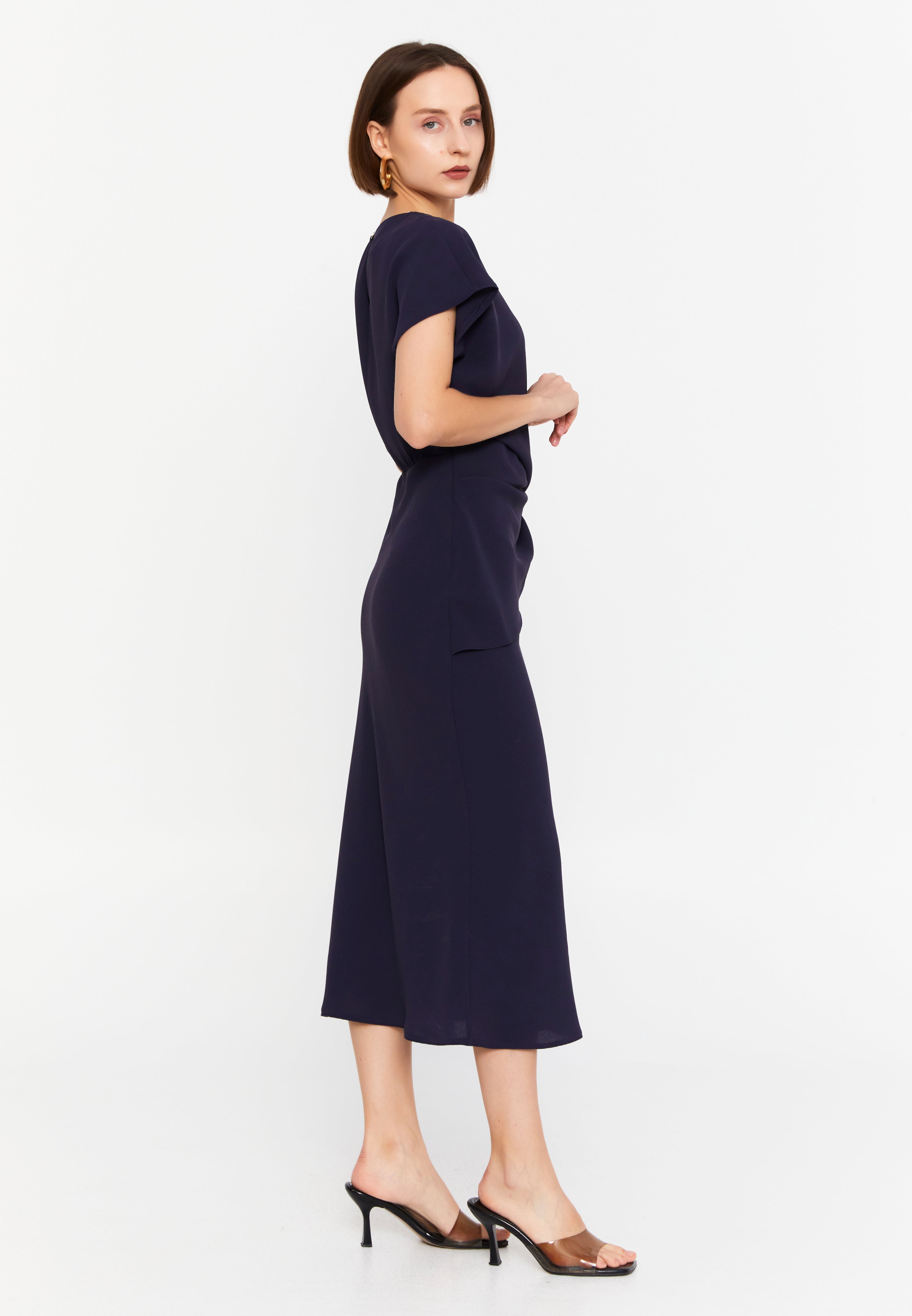 We offer shipping to any part of the world (Calculated on checkout)This navy blue dress features a cinched waist and is perfect for any casual occasion. Made with 100% polyester fabric, it is suitable for all seasons. It provides a comfortable and stylish option for any wardrobe.