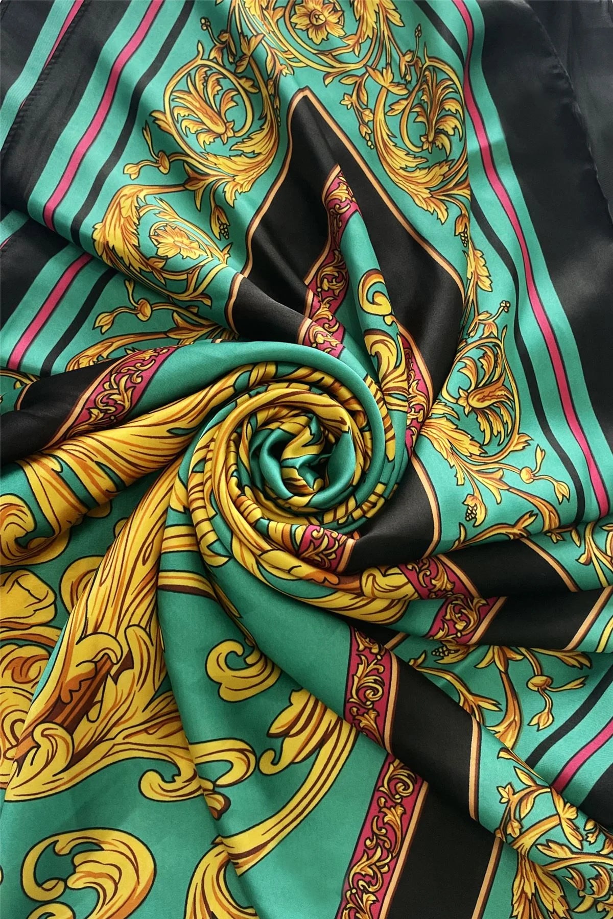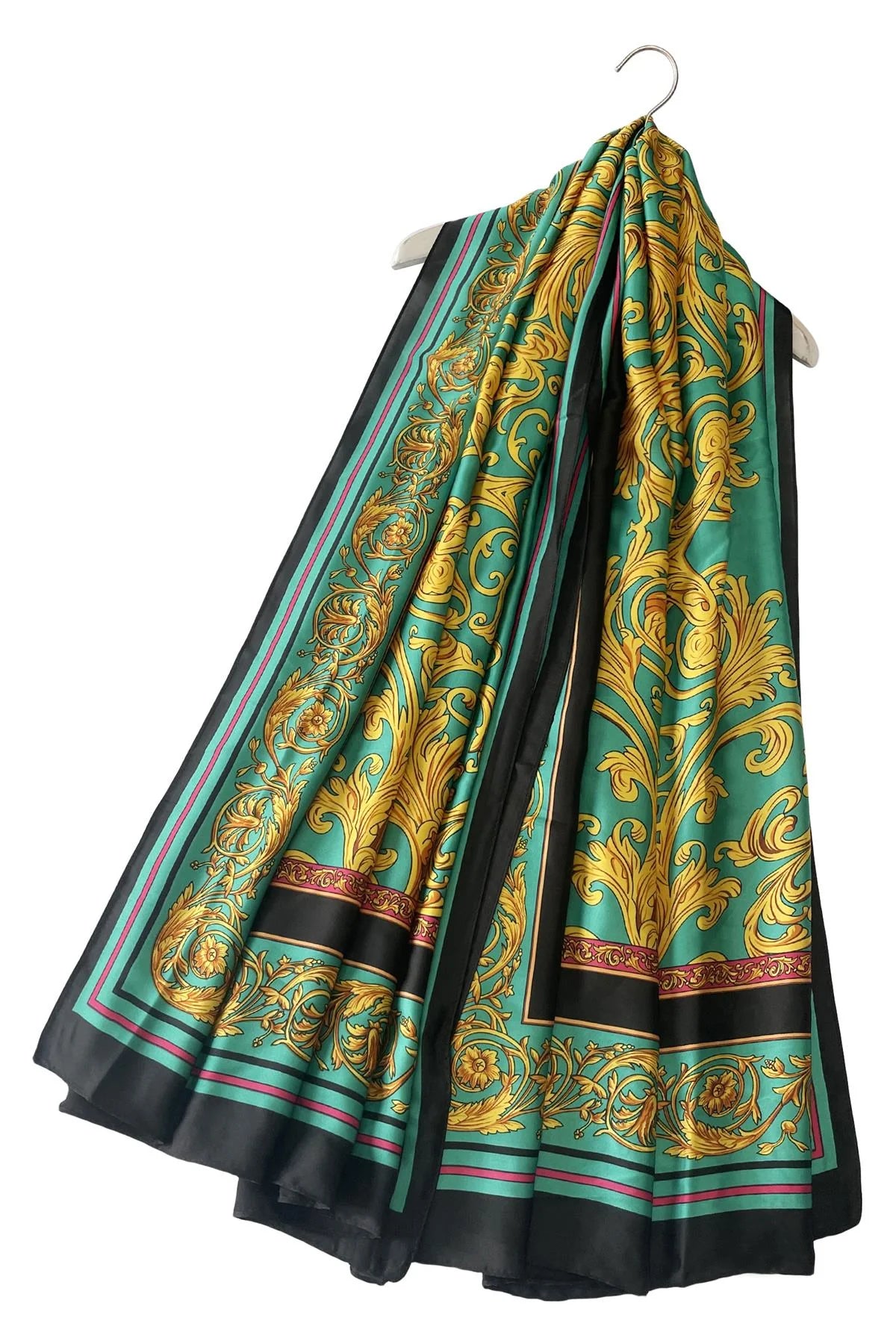 We offer shipping to any part of the world (Calculated on checkout)Enhance your wardrobe with the EE207 Floral Border Print Silk Scarf. Measuring 90 x 180cm, this scarf is made of a luxurious blend of 50% silk and 50% viscose. The traditional floral print and border design add a touch of elegance to any outfit. Perfect for a gift, this scarf is a must-have for any fashion-forward woman.