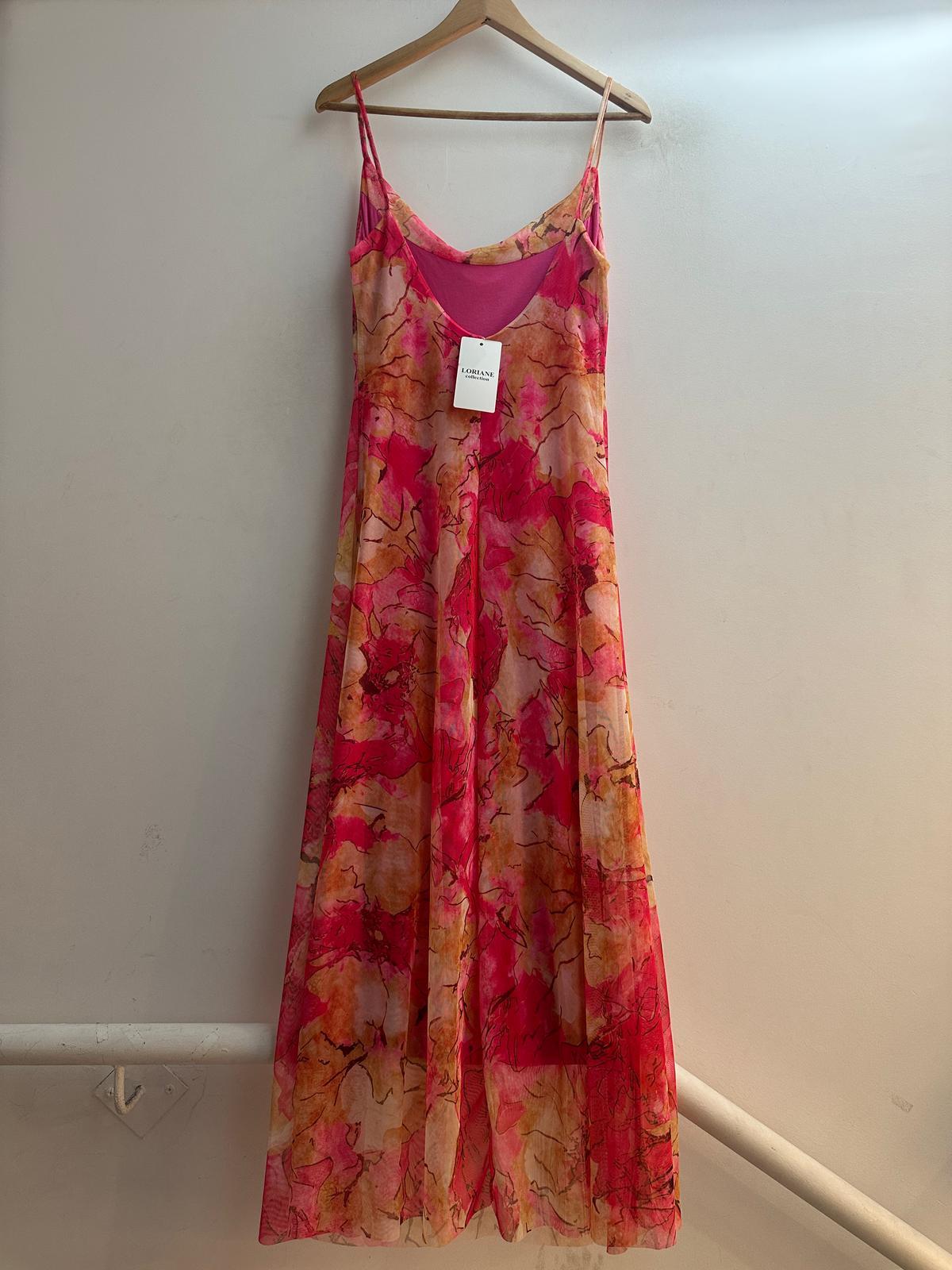 We offer shipping to any part of the world (Calculated on checkout)Expertly crafted in Italy, the GG1010 Floral Mesh Maxi Dress boasts a composition of 100% polyester and a doublure of 5% elastane and 95% viscose. Featuring delicate straps and a beautiful floral print, this sleeveless dress exudes elegance and style.