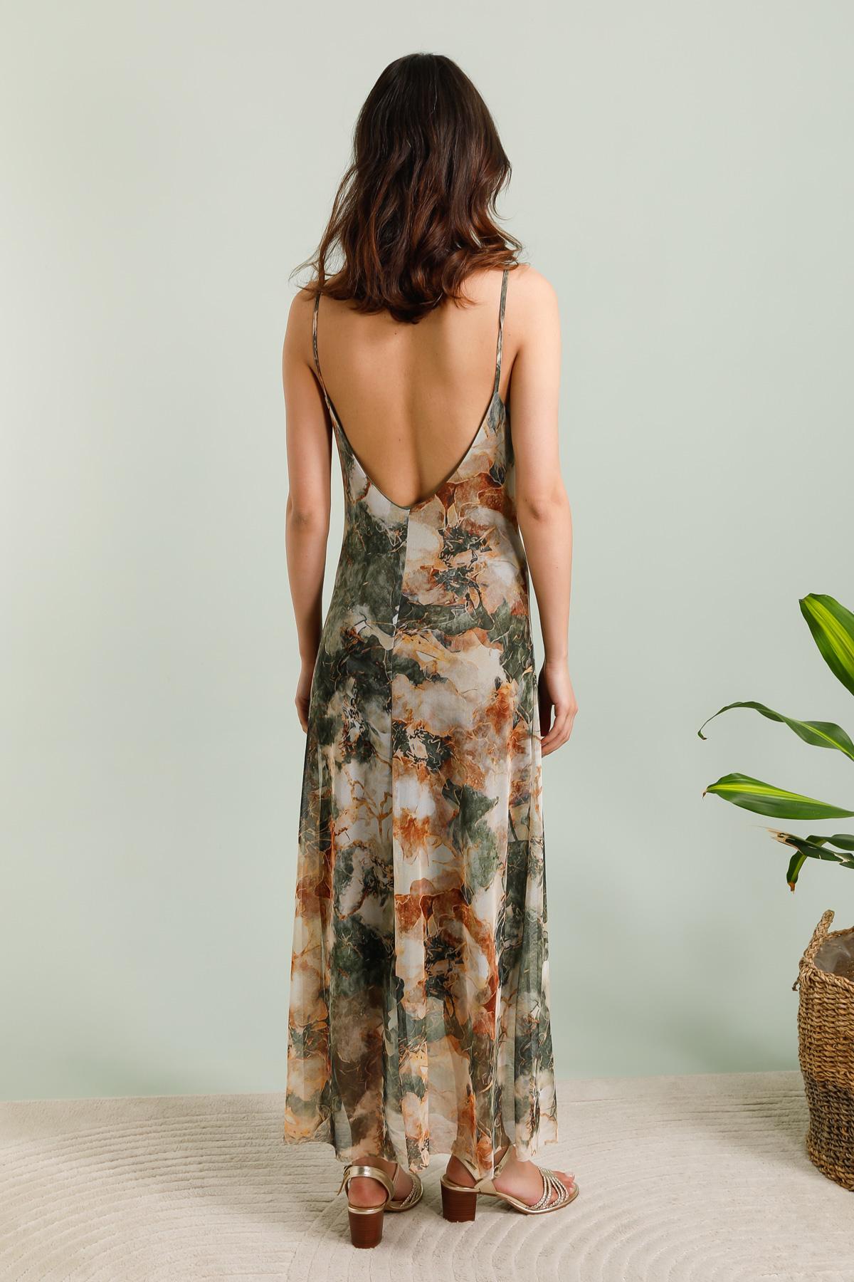 We offer shipping to any part of the world (Calculated on checkout)Made in Italy with a luxurious 100% polyester composition and a soft doublure of 5% elastane and 95% viscose, this GG1011 Khaki Floral Mesh Maxi dress features a stylish sleeveless design and straps adorned with a beautiful floral print. Stay comfortable and fashionable in this exquisite maxi dress.