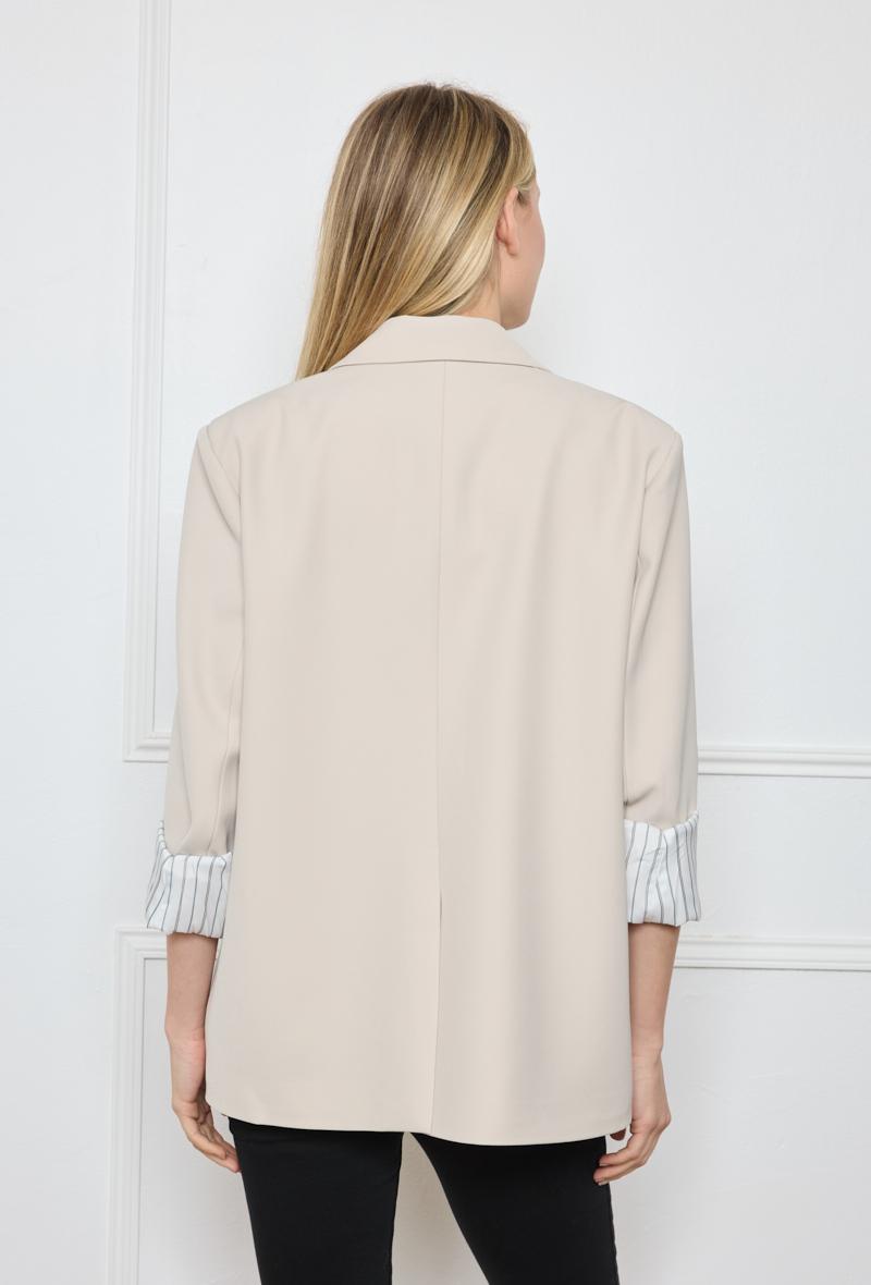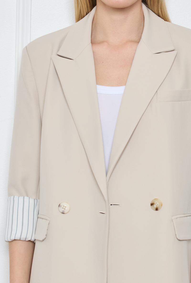 We offer shipping to any part of the world (Calculated on checkout)This GG1018 beige oversized blazer is made with a composition of 5% elastane, 25% cotton, and 70% polyester. This blazer jacket is designed with a professional and stylish look, providing comfort and flexibility with its elastane component.