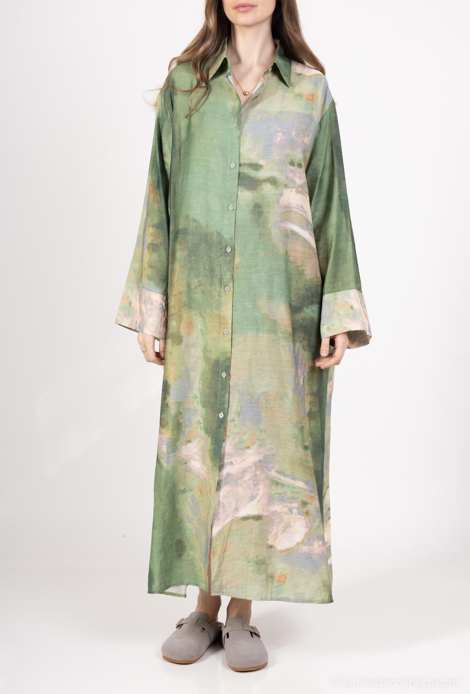 This GG1030 Green Abstract Shirt Maxi Dress boasts a blend of 20% Polyamide and 80% Viscose, guaranteeing both comfort and durability. Its striking, abstract print and long sleeves make it a statement piece for any occasion. Expertly crafted for a stylish and effortless look.