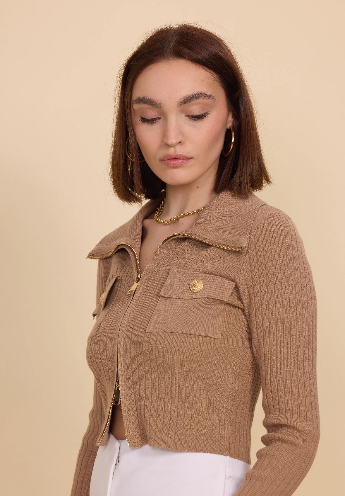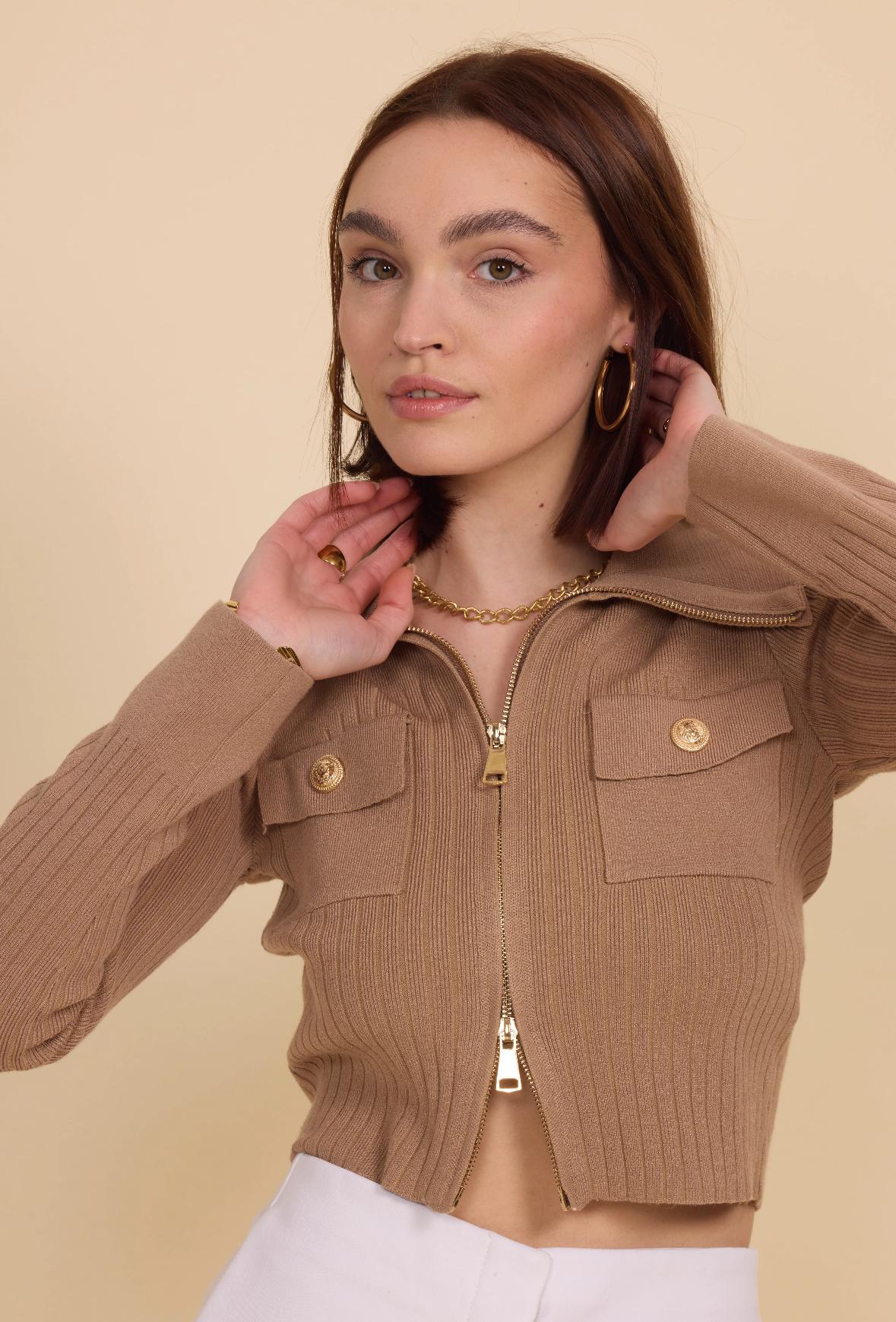 We offer shipping to any part of the world (Calculated on checkout)This GG1038 Camel Zip Cardigan is expertly crafted with a composition of 28% nylon, 28% synthetic, and 44% viscose. With a mock neck, stylish costume jewelry zipper, and long sleeves, this knit cardigan offers both fashion and comfort. Stay warm and on-trend with this versatile and high-quality piece.