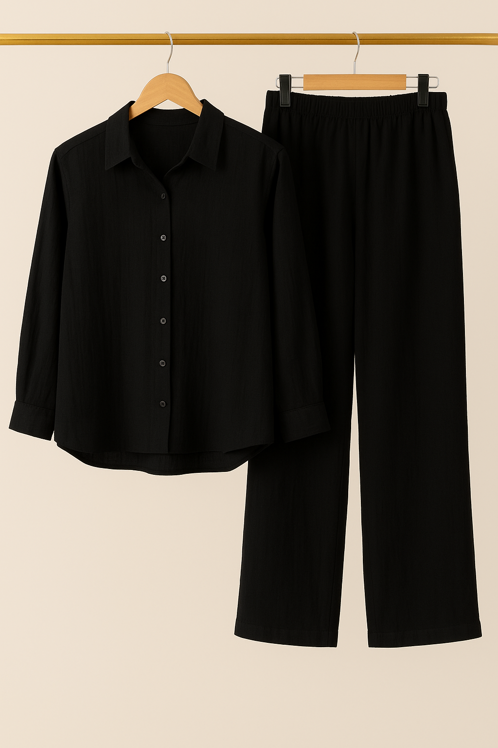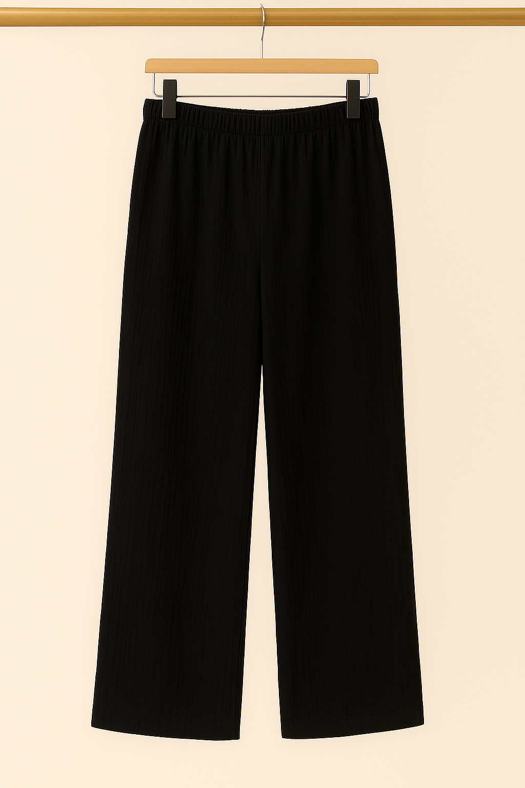 We offer shipping to any part of the world (Calculated on checkout)These Black Casual Trousers feature a sophisticated 40% polyester and 60% viscose composition, delivering an optimal balance of structure and fluidity. The solid design offers timeless versatility while the fabric blend ensures wrinkle resistance with the luxurious drape of viscose. Engineered for both comfort and polished appearance throughout extended wear.