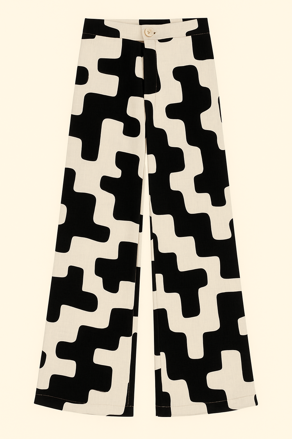 The GG1060 BW Print Trousers showcase a sophisticated fabric composition of 40% polyester and 60% viscose. This expertly balanced blend delivers the perfect combination of structure and fluidity, with viscose providing luxurious drape and breathability while polyester ensures shape retention and durability throughout extended wear.
