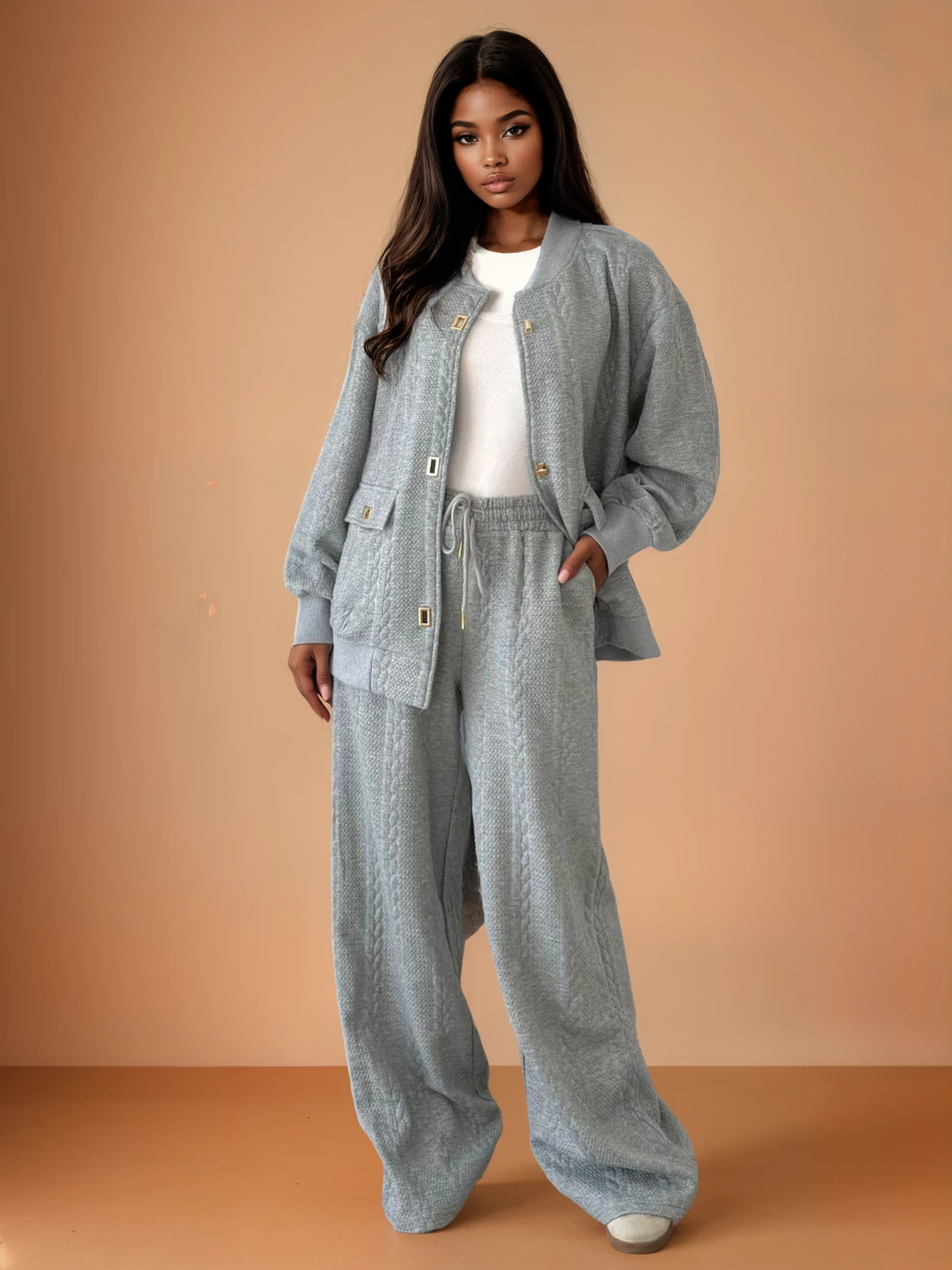 We offer shipping to any part of the world (Calculated on checkout)These grey knitted pants are crafted from 100% polyester, combining comfort with reliable performance. The polyester fabric offers exceptional elasticity and recovery, maintaining the pants' shape and fit through regular wear without losing definition or developing bagging. The material's natural resistance to wrinkles ensures a consistently polished appearance, eliminating frequent ironing requirements. Polyester's durability prevents pilling and color fading, preserving the neutral grey tone's sophistication over time. The knit construction provides gentle stretch and flexibility, allowing unrestricted movement throughout the day. Quick-drying and easy to care for, these pants transition seamlessly from casual daytime styling to more refined occasions, delivering versatile comfort and enduring quality.