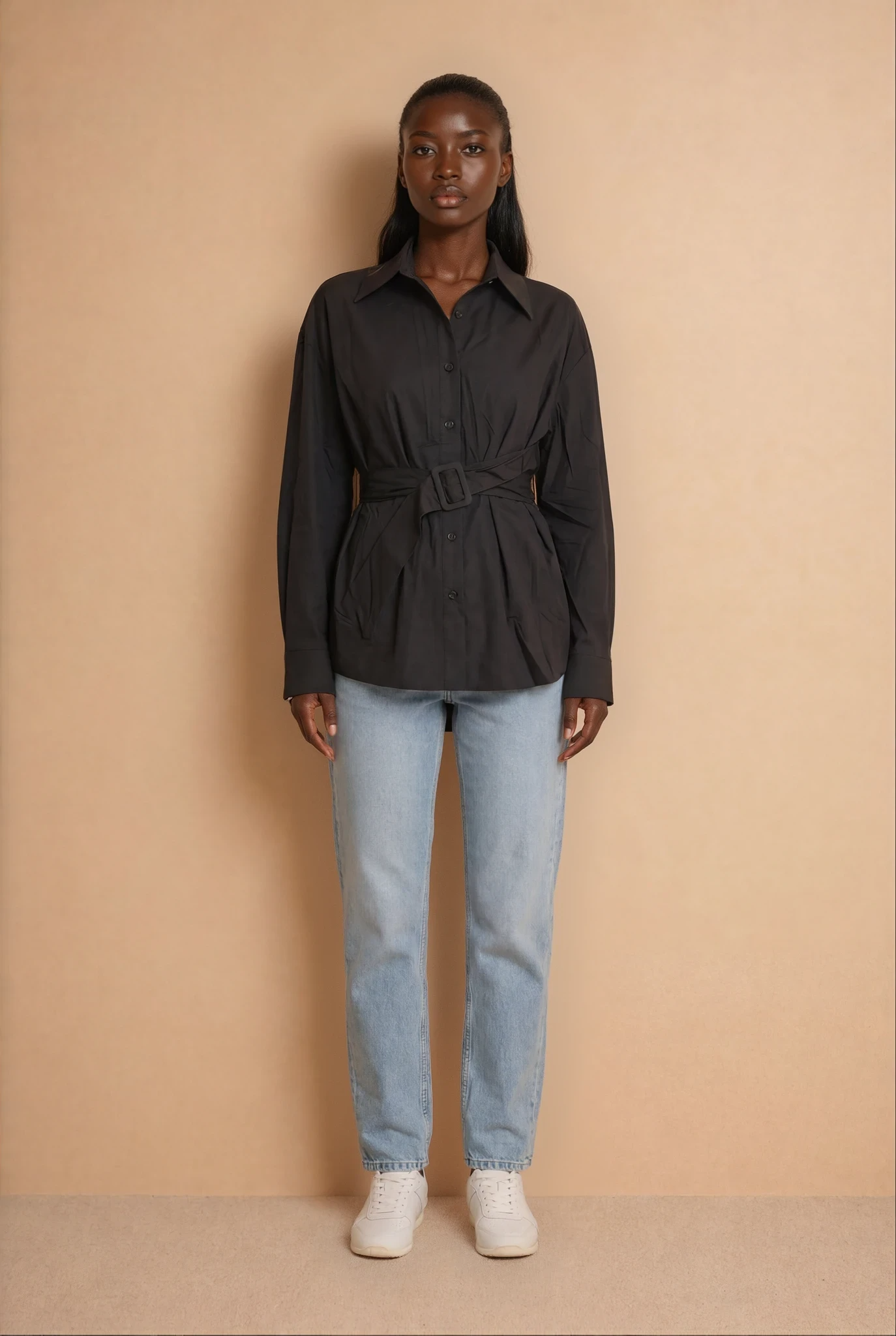 We offer shipping to any part of the world (Calculated on checkout)Styled to perfection with a tie front detail, the GG2056 Black Cotton Top is made from premium cotton for a comfortable fit. The sleek black design adds a touch of sophistication to any outfit, making it a versatile and stylish addition to your wardrobe.