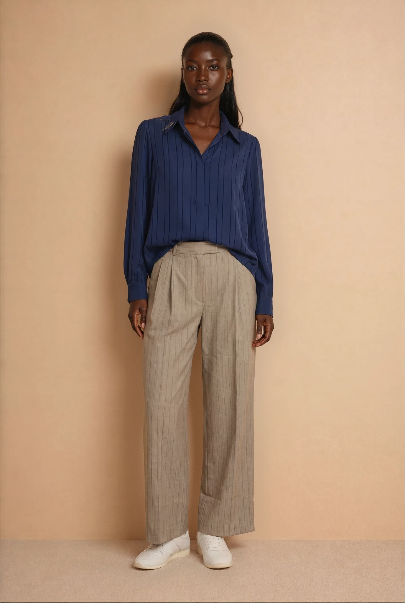Introducing the GG2062 Beige Sleeveless Blazer, a must-have for the modern office. This blazer is designed to be sleeveless, providing a professional and sleek look. The neutral beige color makes it versatile and easy to pair with any outfit. Elevate your office wardrobe with this stylish and practical piece.