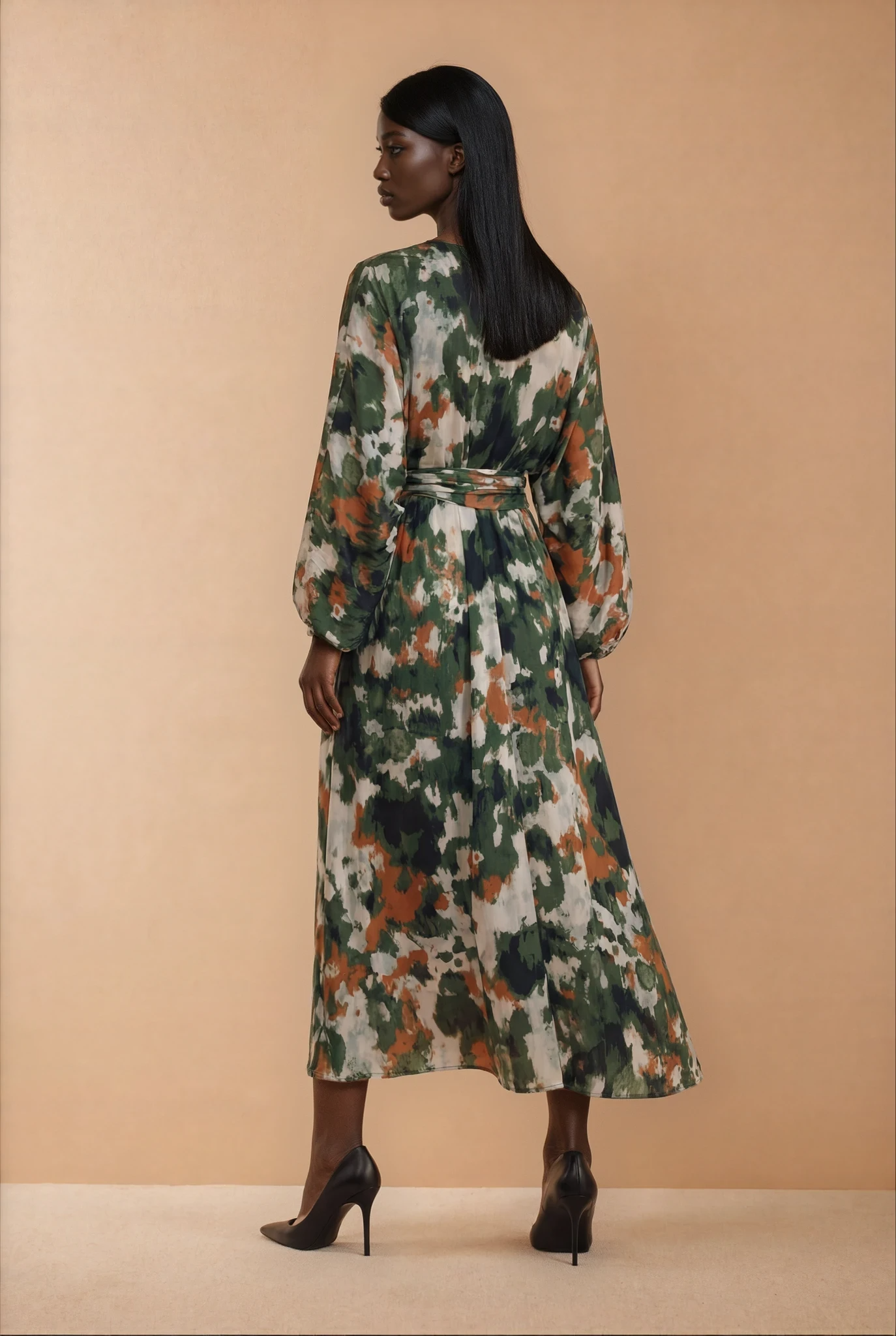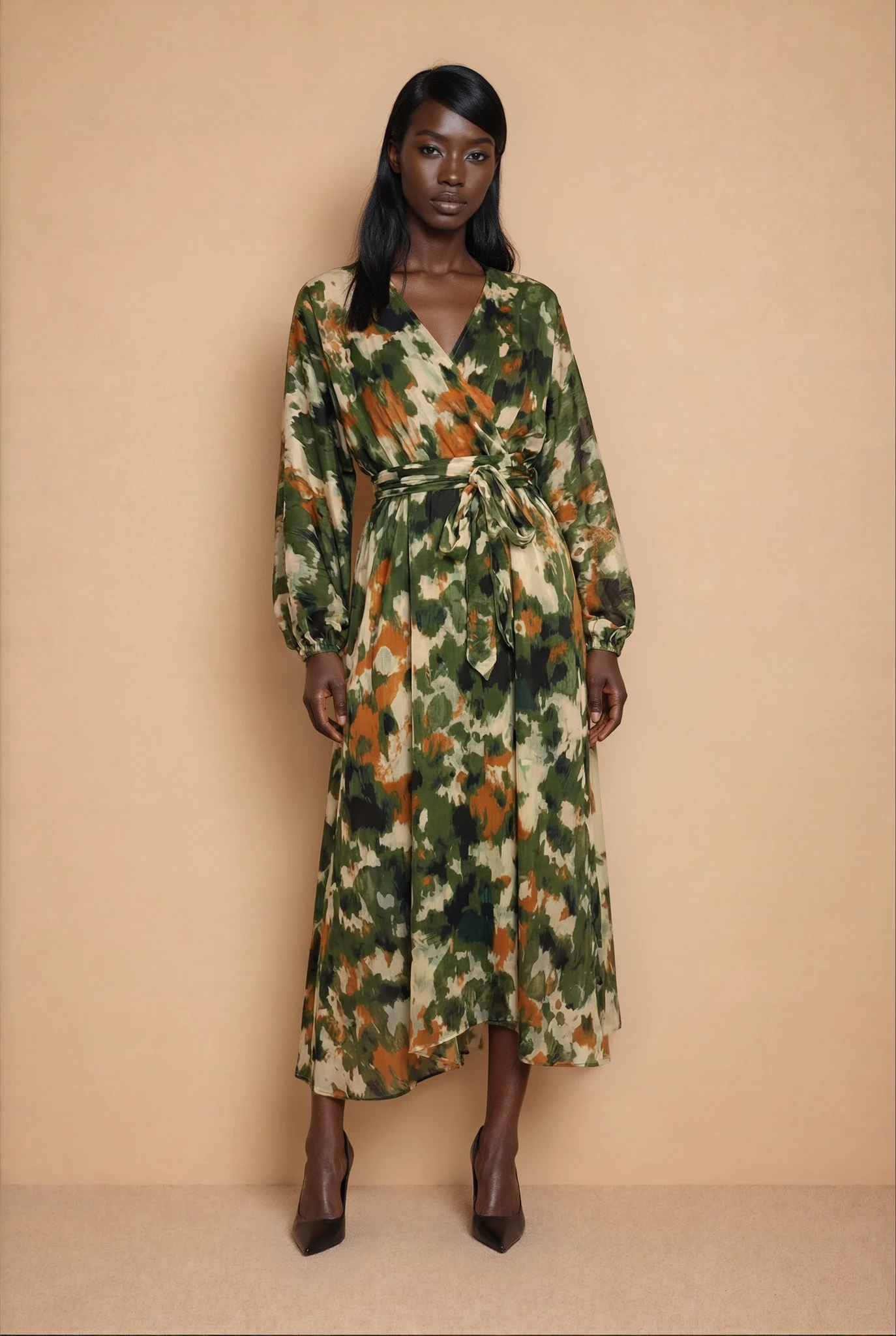 We offer shipping to any part of the world (Calculated on checkout)This Green Print Dress is perfect for any event with its striking green and pink colors and midi length. Stand out with confidence and make a statement with this beautiful dress.