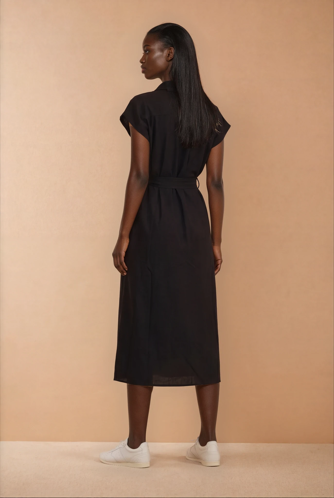 We offer shipping to any part of the world (Calculated on checkout)# GG2103 Black Gold Button Down Midi This refined midi dress showcases a classic button-down silhouette in luxurious 100% cotton, offering both style and practical functionality. The black fabric provides a versatile foundation, while gold-toned buttons introduce an elegant accent that elevates the overall aesthetic. The natural cotton construction delivers superior comfort and breathability, making it suitable for extended wear throughout the day. The structured button-front design creates a polished appearance, whether styled casually or dressed up for more formal occasions.