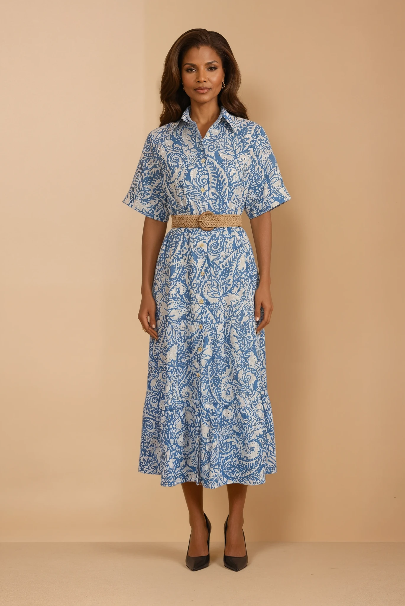 We offer shipping to any part of the world (Calculated on checkout)The GG21334 Blue & White Floral Dress showcases the timeless appeal of natural fiber construction. Made from 100% cotton, this dress delivers exceptional breathability and comfort for extended wear in any climate. The sophisticated blue and white floral pattern offers versatile styling options, seamlessly transitioning from professional environments to social occasions. Pure cotton fabric provides superior durability, maintains its integrity through frequent laundering, and develops a softer hand with age. Perfect for those prioritizing natural materials and sustainable choices, this dress combines practical performance with elegant design that endures season after season.