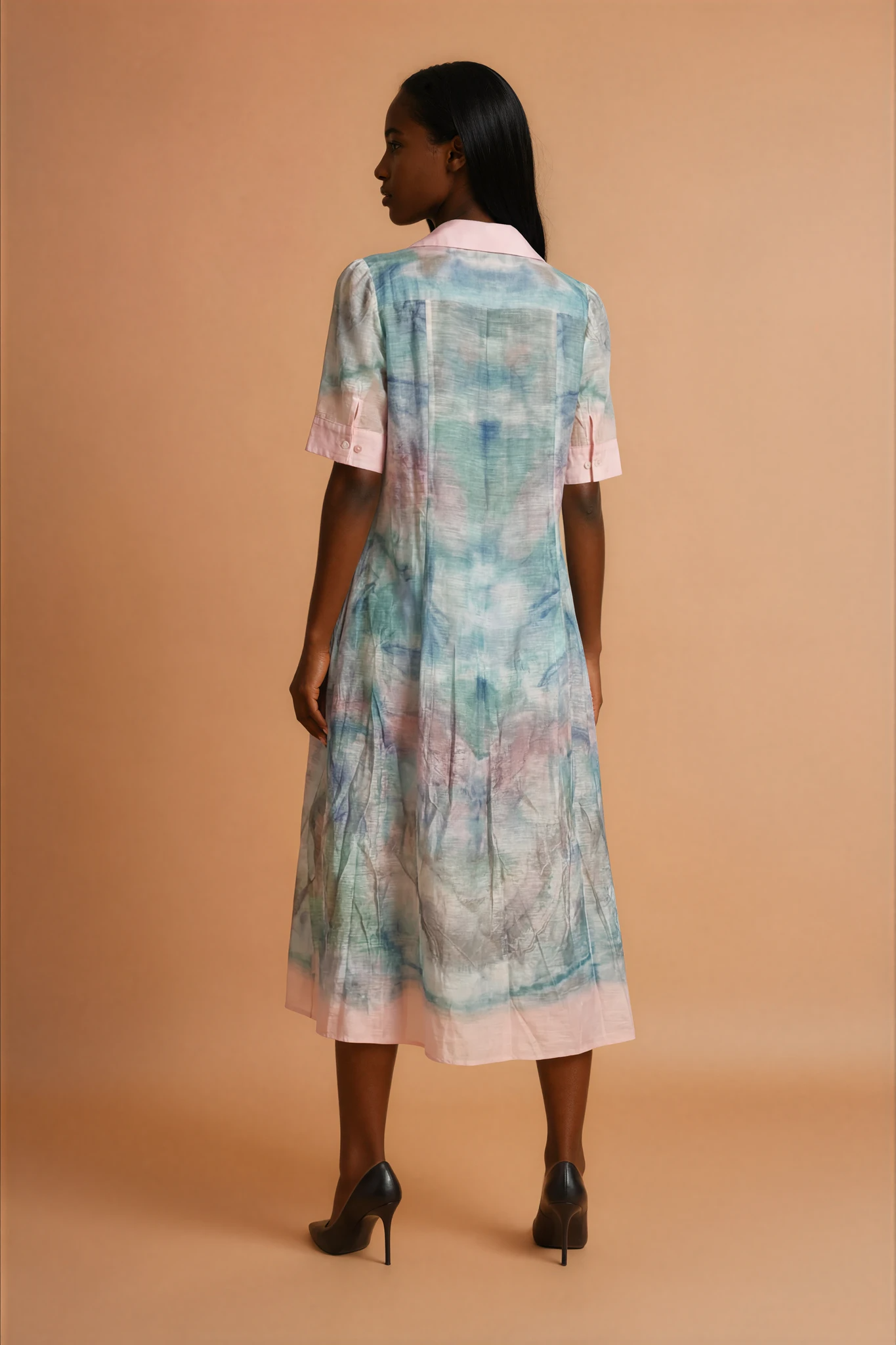 We offer shipping to any part of the world (Calculated on checkout)This charming blue and pink pastel midi dress combines soft, complementary hues for a refined aesthetic. The balanced color blocking creates a flattering silhouette suitable for various occasions, from casual outings to semi-formal events. The midi length provides elegant coverage while maintaining contemporary appeal. Crafted with attention to detail, this piece transitions seamlessly through seasons and pairs effortlessly with neutral or coordinating accessories for a polished finish.