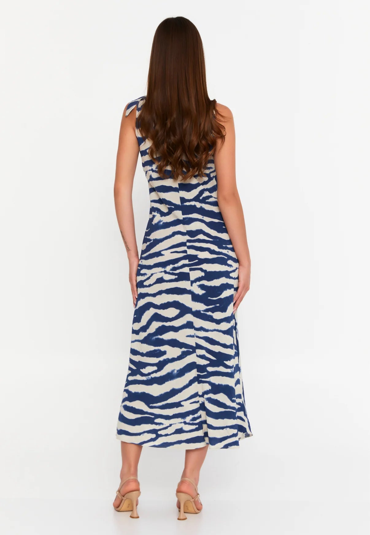 We offer shipping to any part of the world (Calculated on checkout)This navy beige zebra midi dress combines casual elegance with breathable comfort, crafted from high-quality linen fabric. Its distinctive zebra pattern adds a stylish edge, while the midi length offers a flattering and versatile fit suitable for various occasions. The natural linen material ensures breathability and durability, making this dress a smart choice for warm weather and everyday wear.