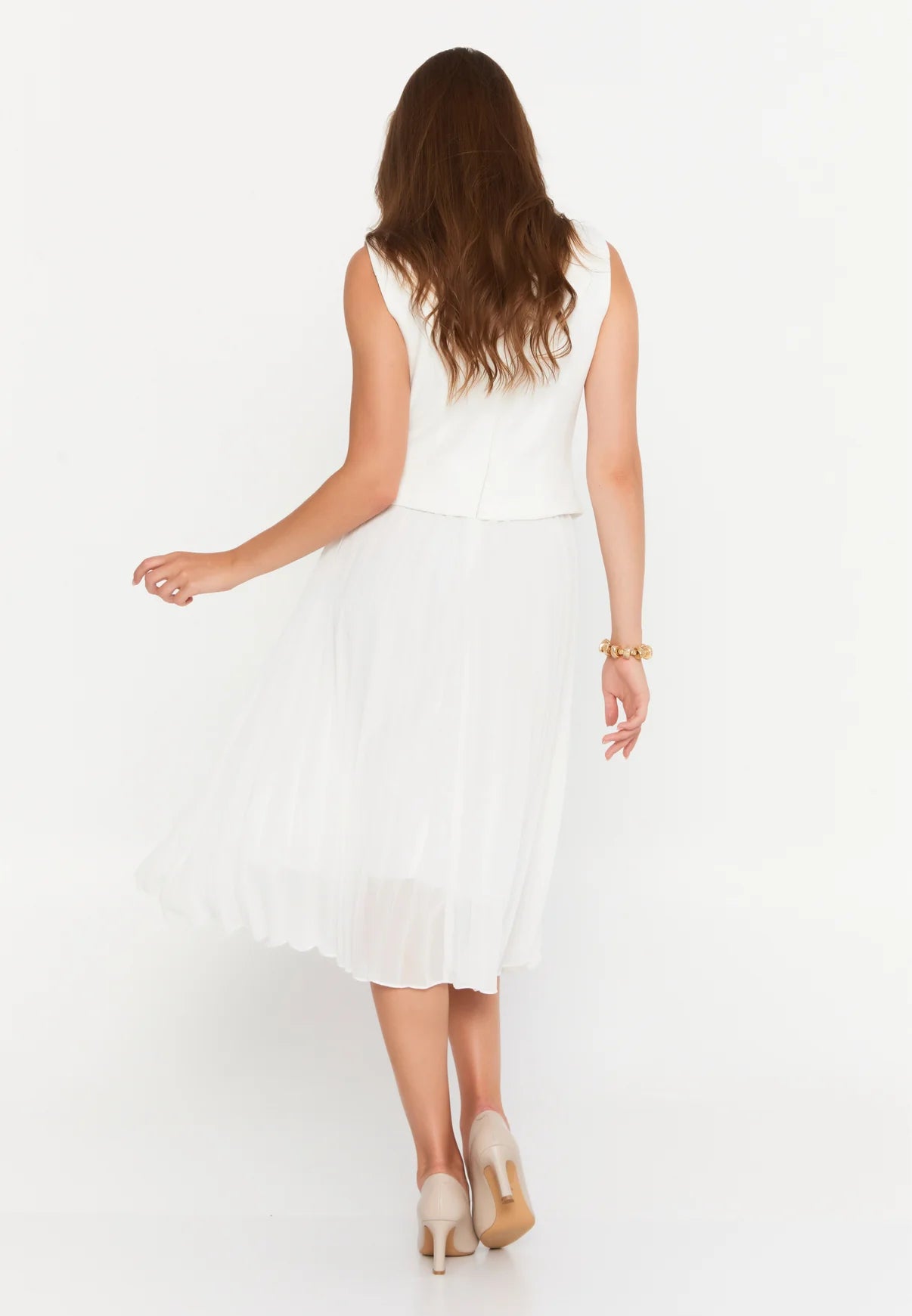 We offer shipping to any part of the world (Calculated on checkout)The GG3020 White Gold Detail Pleated Midi is crafted from a blend of 63% polyester and 33% viscose, providing a fabric that balances durability with softness. This composition ensures the skirt maintains its pleated structure while offering comfort and breathability, making it an excellent choice for sophisticated, all-day wear.