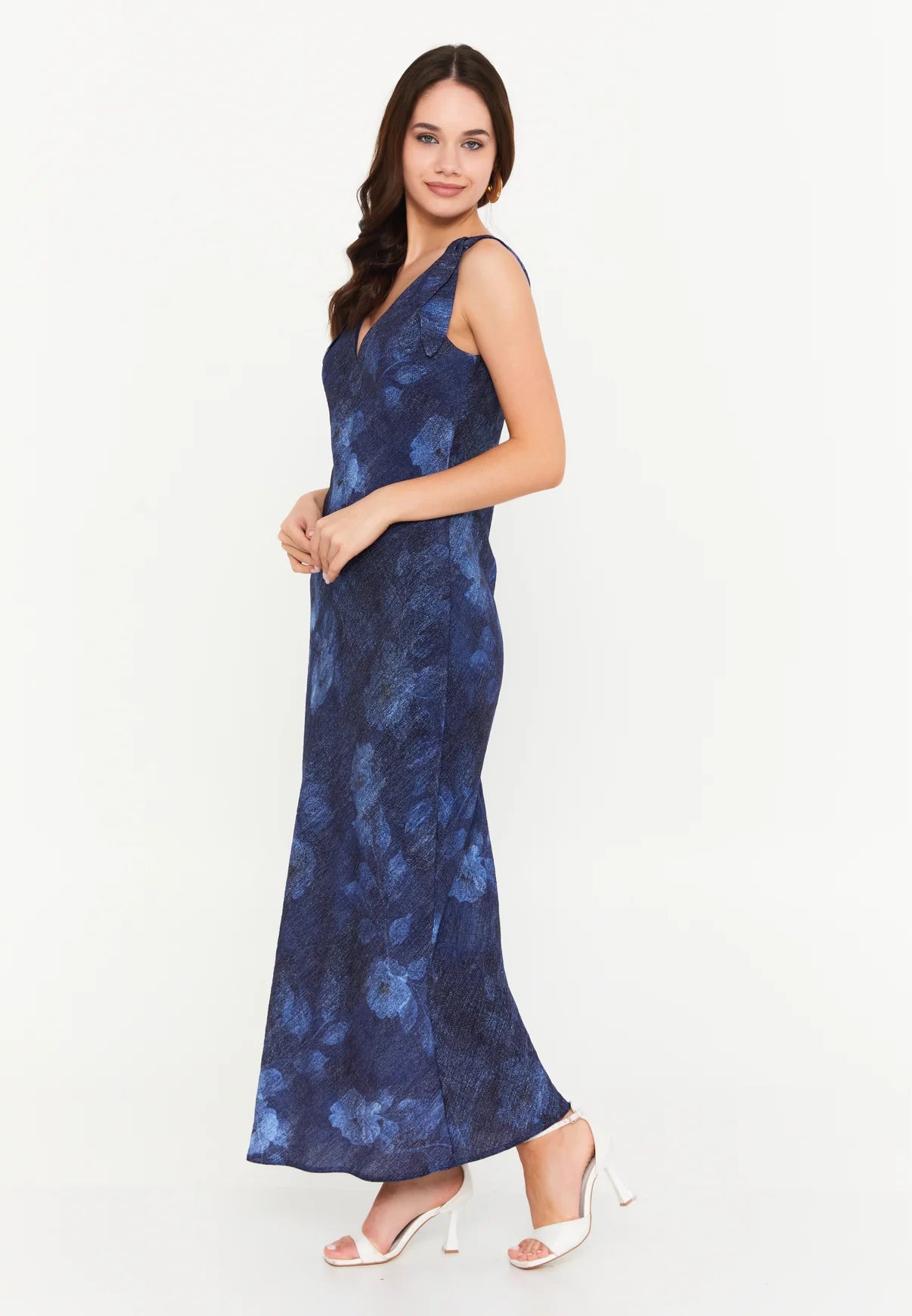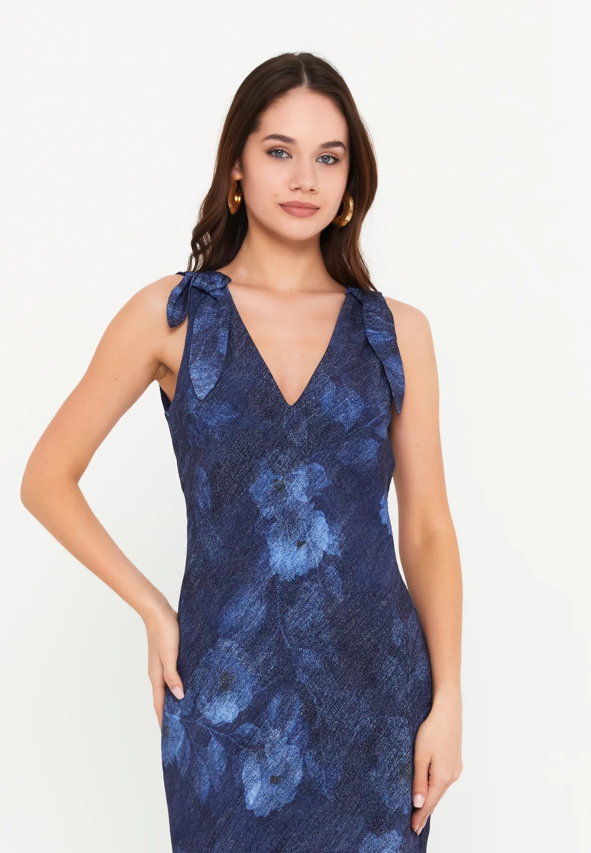 We offer shipping to any part of the world (Calculated on checkout)The GG3024 Blue Floral Midi Dress is made from a blend of 85% viscose and 15% nylon, combining natural softness with added strength and elasticity. This fabric composition ensures a comfortable fit with excellent drape and durability, making it ideal for stylish, long-lasting wear in both casual and formal settings.