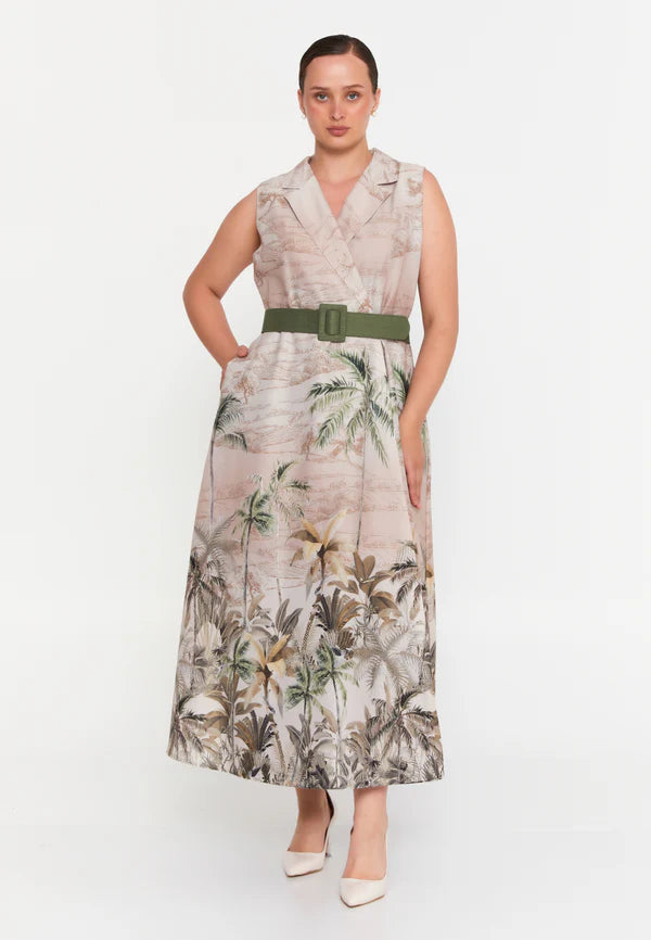 We offer shipping to any part of the world (Calculated on checkout)The GG3043 Palm Print Maxi Dress is crafted from a blend of 77% cotton and 20% nylon, combining natural breathability with added durability and stretch. Its vibrant palm print design enhances a relaxed yet sophisticated look, while the maxi length offers elegant coverage suitable for various occasions. This dress delivers comfort and style, making it a versatile addition to any wardrobe.