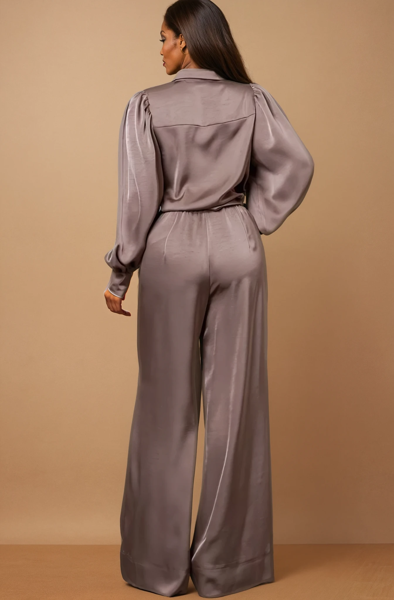 We offer shipping to any part of the world (Calculated on checkout)The GG4013 Mocha Solid Button Down Trouser is crafted from 100% polyester, designed without stretch for a structured fit. Featuring a wide-leg cut, back elastic waist, front zipper, and side pockets, these trousers combine comfort with sophisticated tailoring. Part of a coordinated set, they complement the matching button-down top for a polished, fit-and-flare ensemble ideal for both professional and stylish casual wear. Imported and expertly finished for a flattering silhouette.