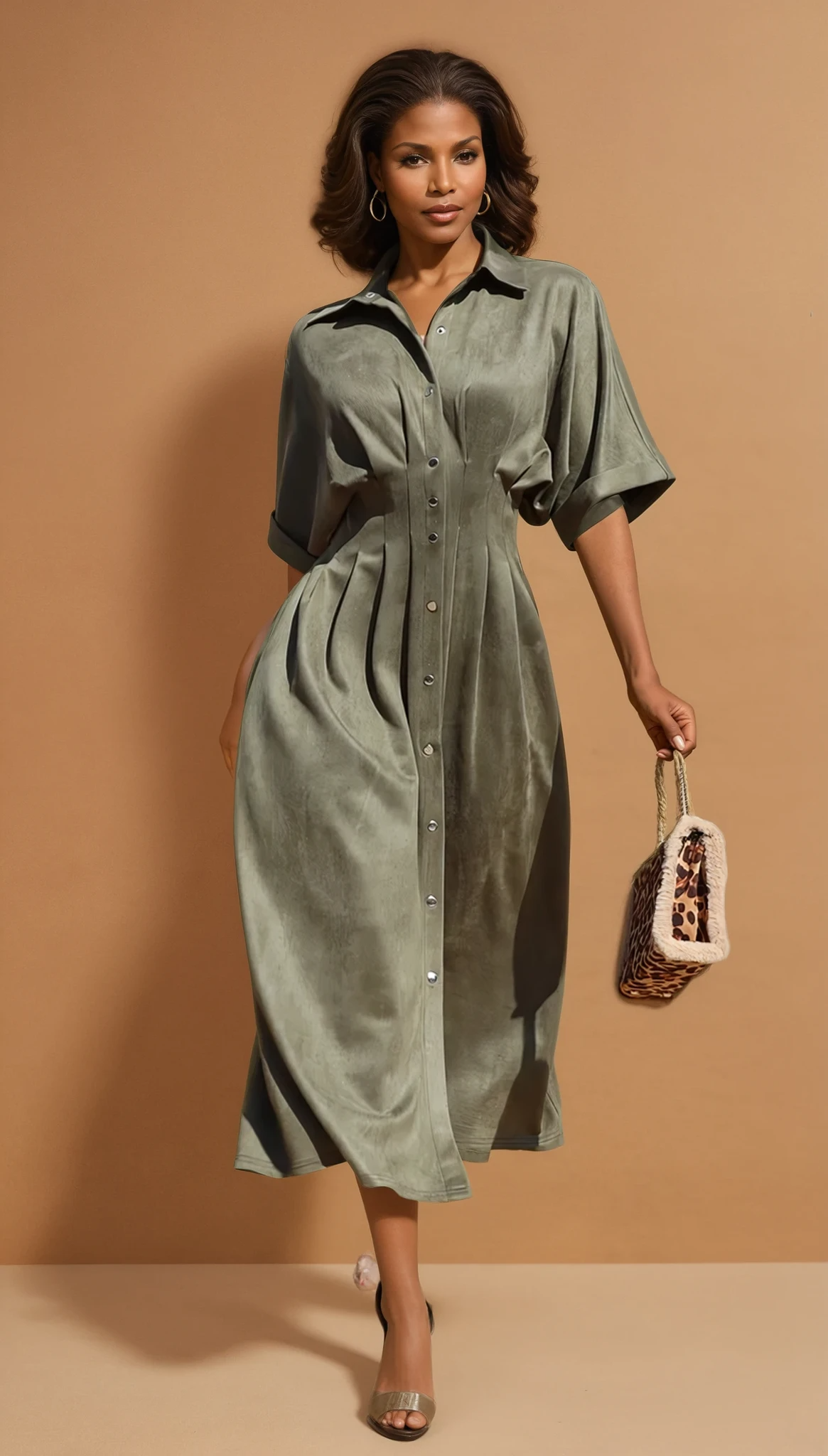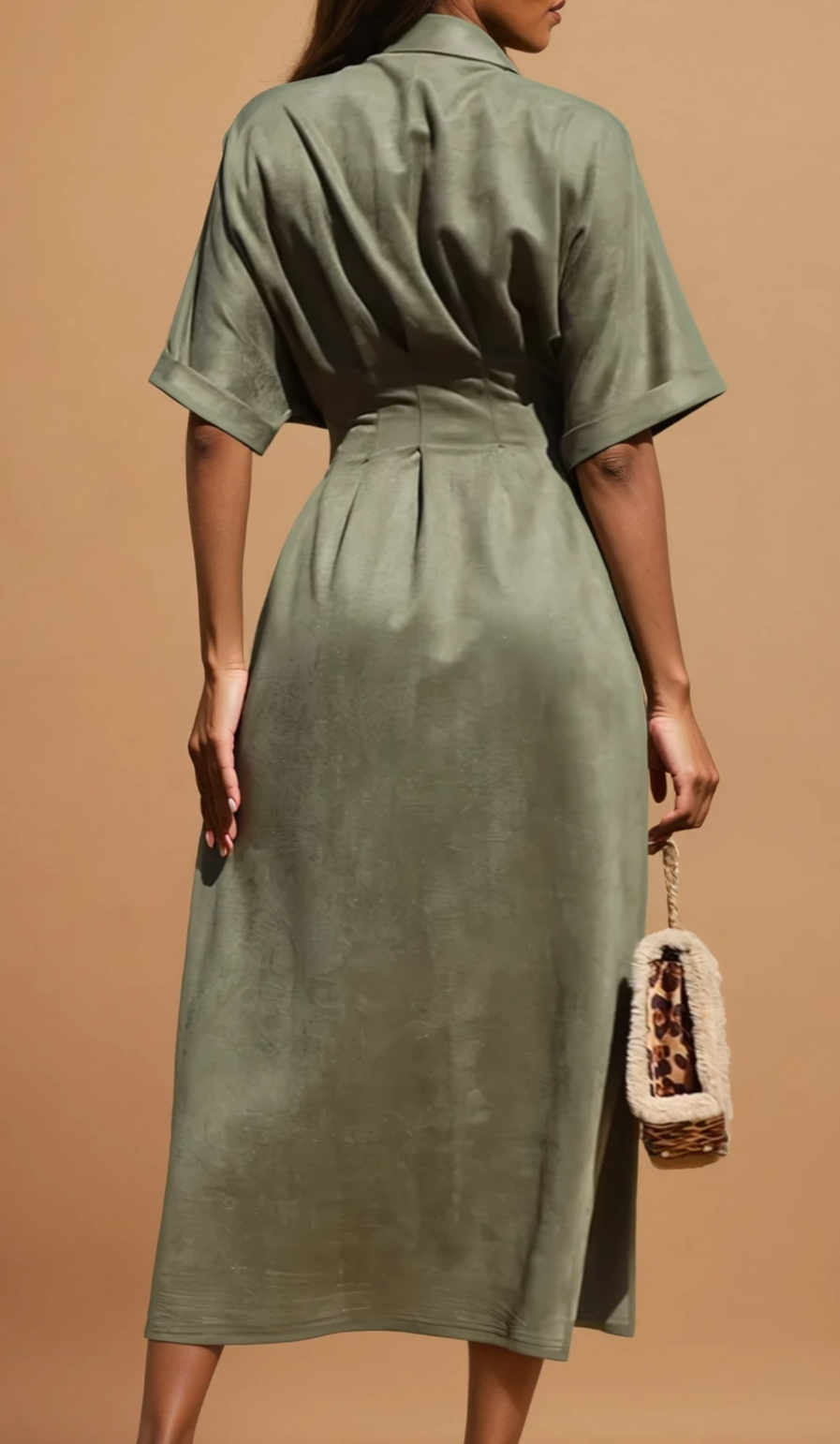 We offer shipping to any part of the world (Calculated on checkout)Experience effortless style with the GG4039 Loose Fit Button Down Suede Dress. Designed to stretch well for all-day comfort, this dress features a relaxed silhouette and practical side pockets. Modeled by a 5'5" wearer with measurements 34"/24"/35", who fits a size small, it offers a flattering loose fit without compromising shape. Perfect for those seeking both elegance and ease in their wardrobe.
